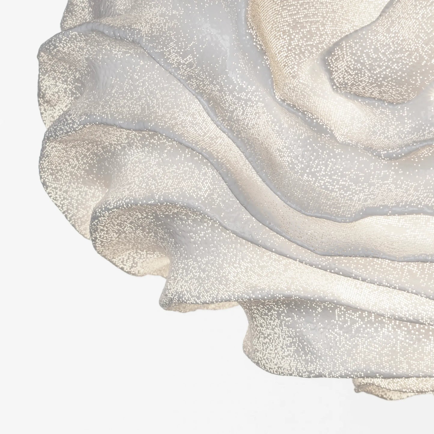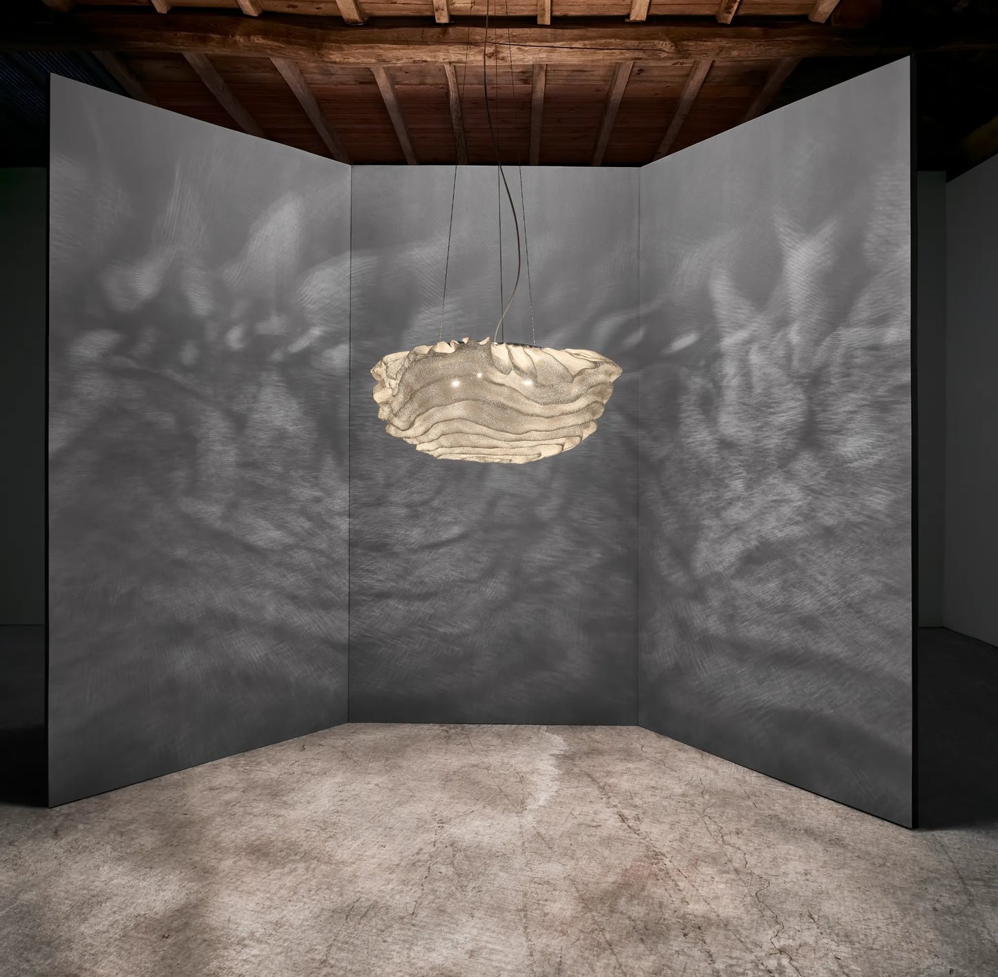 Un nuage ou une fleur? Laissez parler votre imagination. "Une forme dynamique qui semble être en constante évolution. Un nuage de courbes suggestives, des volumes impossibles qui entrelacent le futur et le présent d'une manière subtile. Une forme décomplexée faite de matériaux de pointe." Fabriquée en acier inoxydable peint, la suspension Nevo diffuse une lumière douce et tamisée, très agréable pour une chambre, une entrée ou un couloir. Quelques ouvertures sur le dessus permettent une diffusion de la lumière en indirect. Existe en blanc, beige, gris ou taupe : nous consulter.