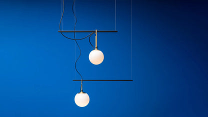 La suspension NH est une création du duo de designer Neri & Hu. Comme tous les projets conçus par Neri&Hu, nh propose une réinterprétation de la culture et de la tradition orientale avec une approche contemporaine constante. Avec une légèreté surprenante et des mouvements élémentaires, NH crée un paysage d'éléments générant une composition non statique équilibrée caractérisée par une élégante harmonie des couleurs et des matériaux. L’alliance du verre soufflé et du laiton représentent une combinaison parfaite de tradition et d'innovation, ainsi que l'expression d'un design responsable et durable, également véhiculé par l'utilisation d'une source LED à faible consommation de modernisation.