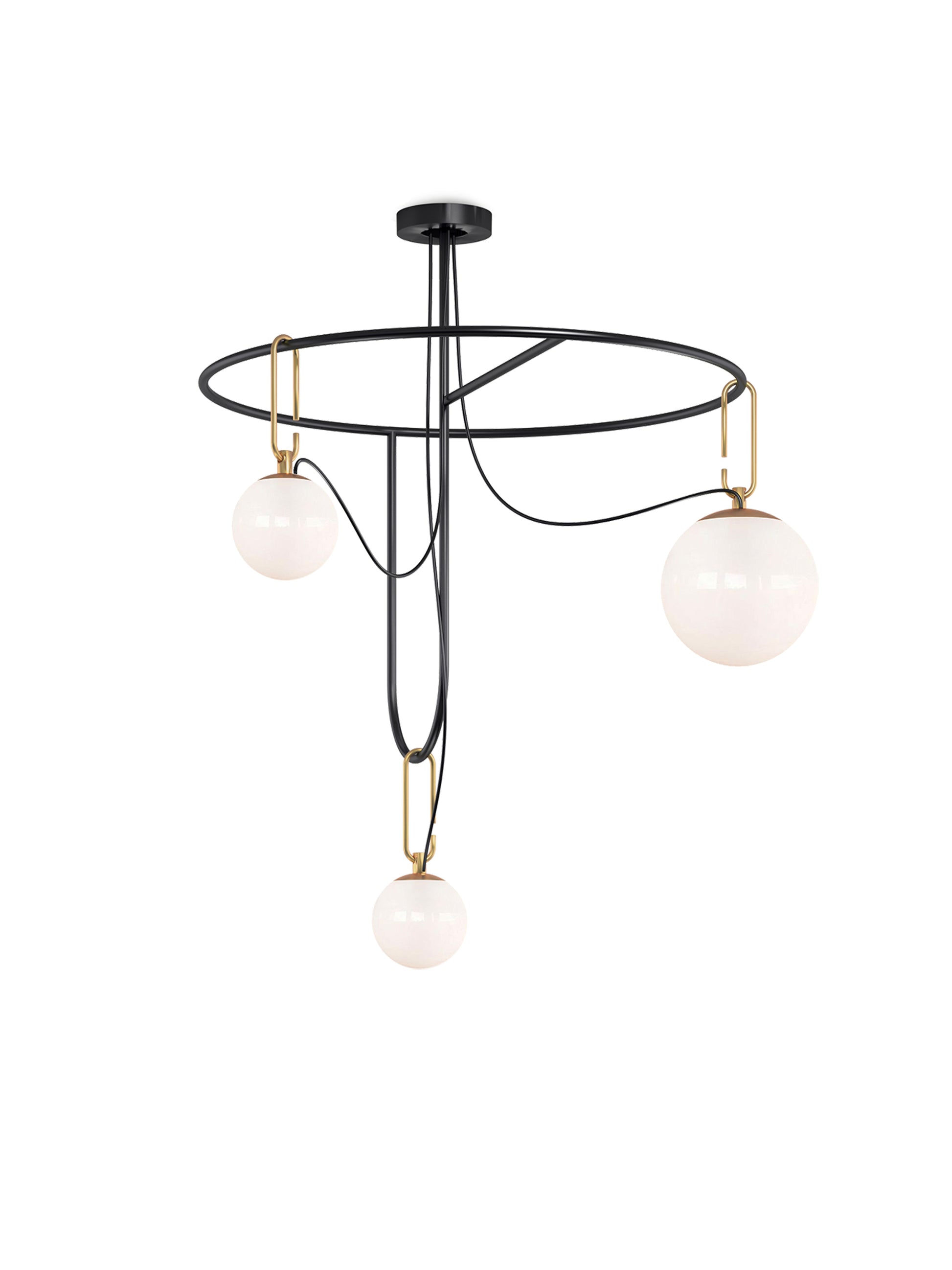 La suspension NH est une création du duo de designer Neri & Hu. Comme tous les projets conçus par Neri&Hu, nh propose une réinterprétation de la culture et de la tradition orientale avec une approche contemporaine constante. Avec une légèreté surprenante et des mouvements élémentaires, NH crée un paysage d'éléments générant une composition non statique équilibrée caractérisée par une élégante harmonie des couleurs et des matériaux. L’alliance du verre soufflé et du laiton représentent une combinaison parfaite de tradition et d'innovation, ainsi que l'expression d'un design responsable et durable, également véhiculé par l'utilisation d'une source LED à faible consommation.