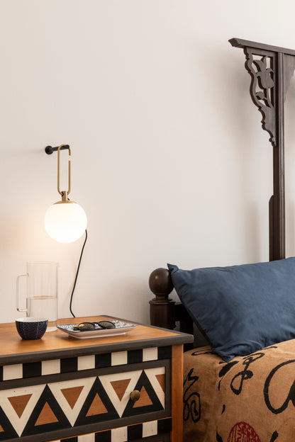 Nh1217 est un appareil simple, polyvalent et pratique qui peut être posé ou suspendu. Une sphère en verre soufflé blanc coulisse le long d'un anneau en laiton brossé, ce qui lui permet de prendre différentes positions et d'ajuster et de diriger librement le diffuseur. Le cadre devient un support, un crochet pour accrocher l'appareil au mur, ou une poignée favorisant une interaction avec la lumière. Nh1217 poursuit sa recherche sur l'interaction dynamique de l'expérience, des détails, des matériaux, de la forme et de la lumière que Neri & Hu poursuit avec Artemide. Les matériaux sélectionnés représentent une combinaison parfaite de tradition et d'innovation, ainsi que l'expression d'un design responsable et durable, également véhiculée par l'utilisation d'une source de LED rétro-éclairage basse consommation et par un emballage en carton écologique.