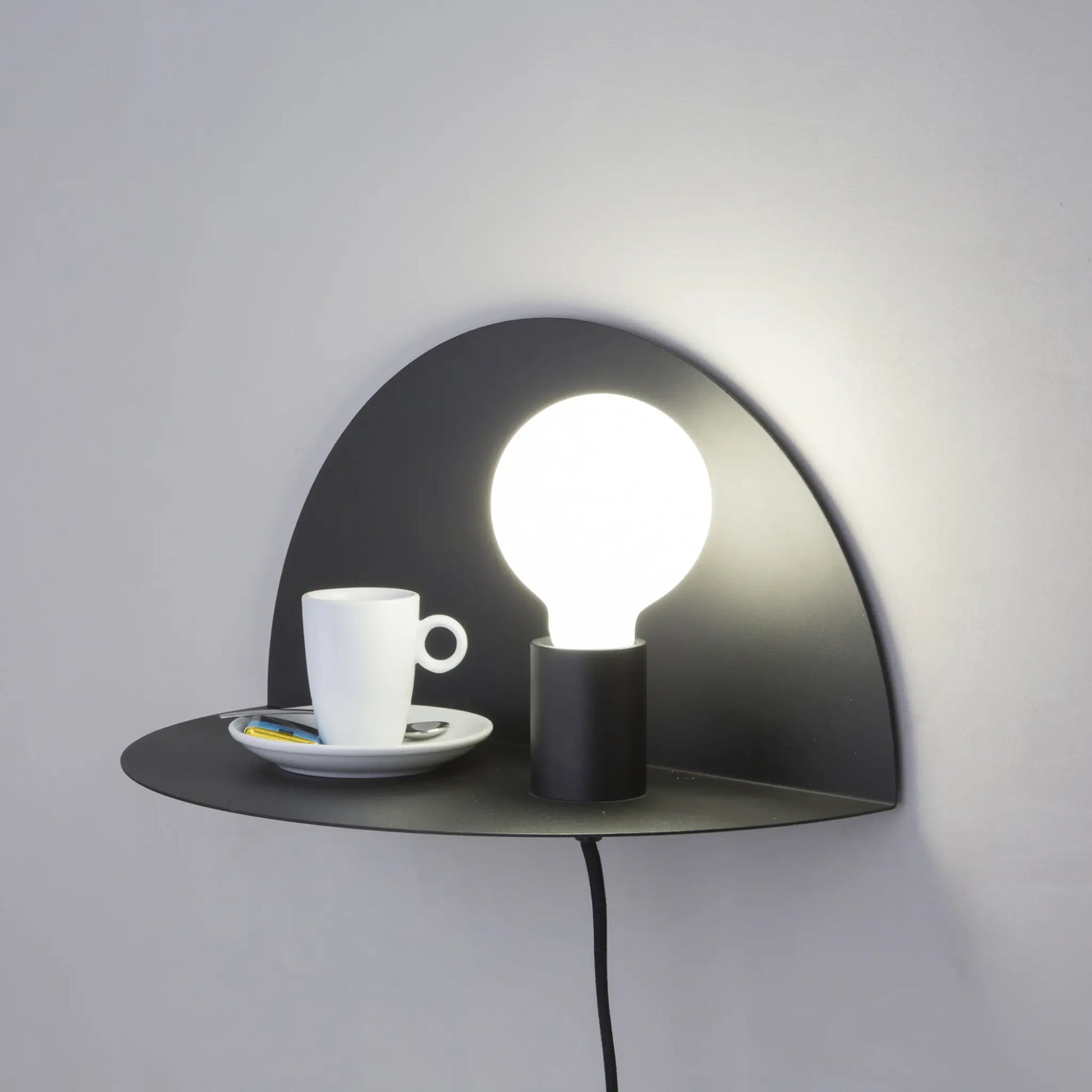 L’applique murale NIT, conçue par le studio de design Goula Figuera, est une pièce à la fois esthétique et fonctionnelle. Son design unique repose sur une structure circulaire pliée, offrant une double utilité : un côté permet une fixation murale stable, tandis que l’autre sert d’étagère pratique pour poser de petits objets.