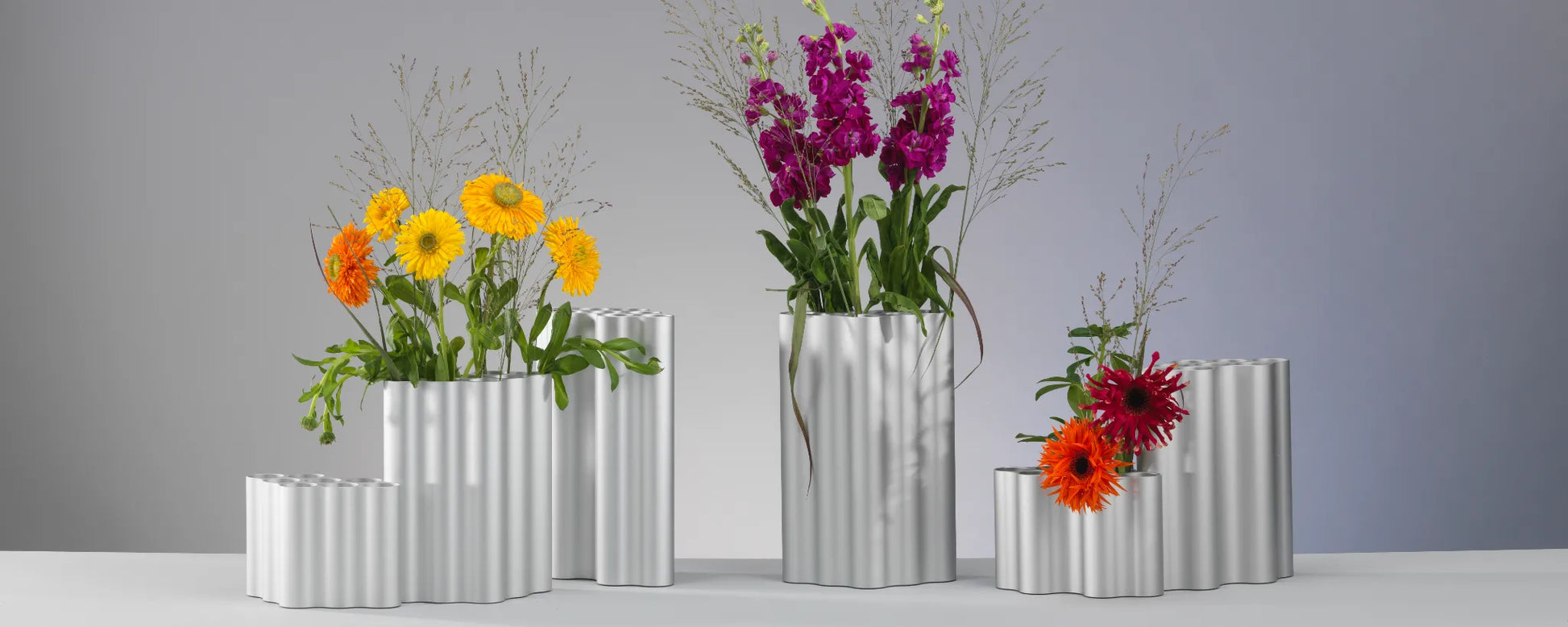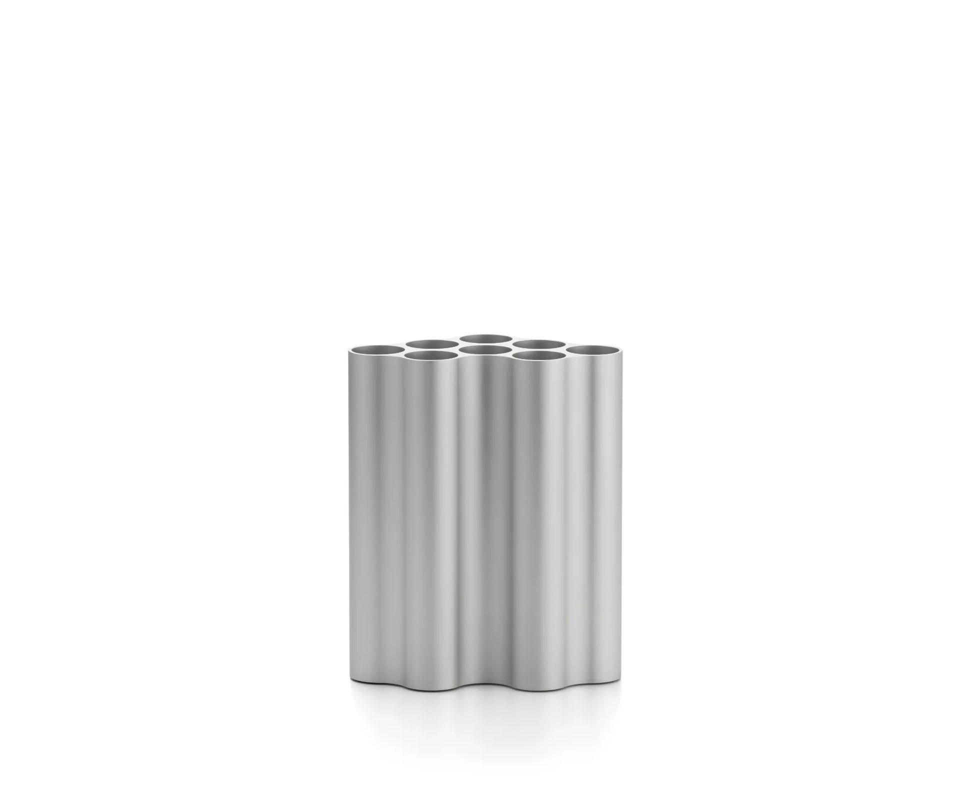 La forme des vases Nuage fit sa première apparition dans l‘œuvre de Ronan et Erwan Bouroullec en 2002. Évoquant un nuage, le motif a été produit à l‘origine en tant que module d‘étagère en plastique qui peut être rassemblé en groupes ou en configurations de grande taille. Huit cavités tubulaires sont percées dans les surfaces planes de l‘élément modulaire, définissant ainsi les contours extérieurs de la forme. Au fil des ans, les frères Bouroullec ont varié cette forme qu‘ils ont intégrée de façon réitérée dans leur travail graphique. Pour la création du vase Nuage, les créateurs ont réalisé le motif en différentes longueurs. Les cavités sont maintenant placées verticalement dans la forme de base, divisant le vase en huit tubes qui peuvent être utilisés pour des arrangements exceptionnels de fleurs et d‘herbes. Les surfaces ondulées créent un jeu d‘ombre et de lumière attrayant, les vases peuvent être assemblés de manière à créer de véritables formations nuageuses.