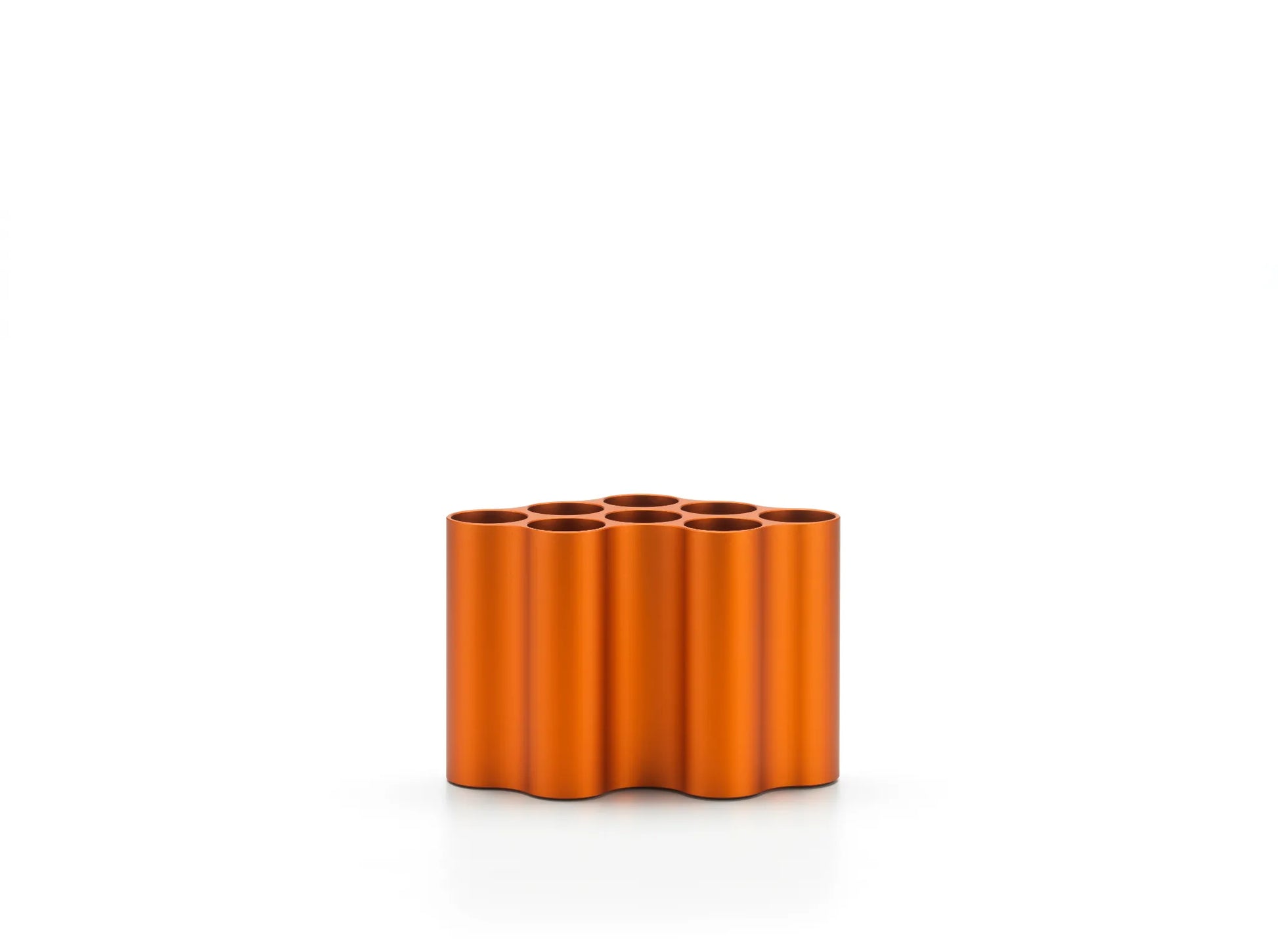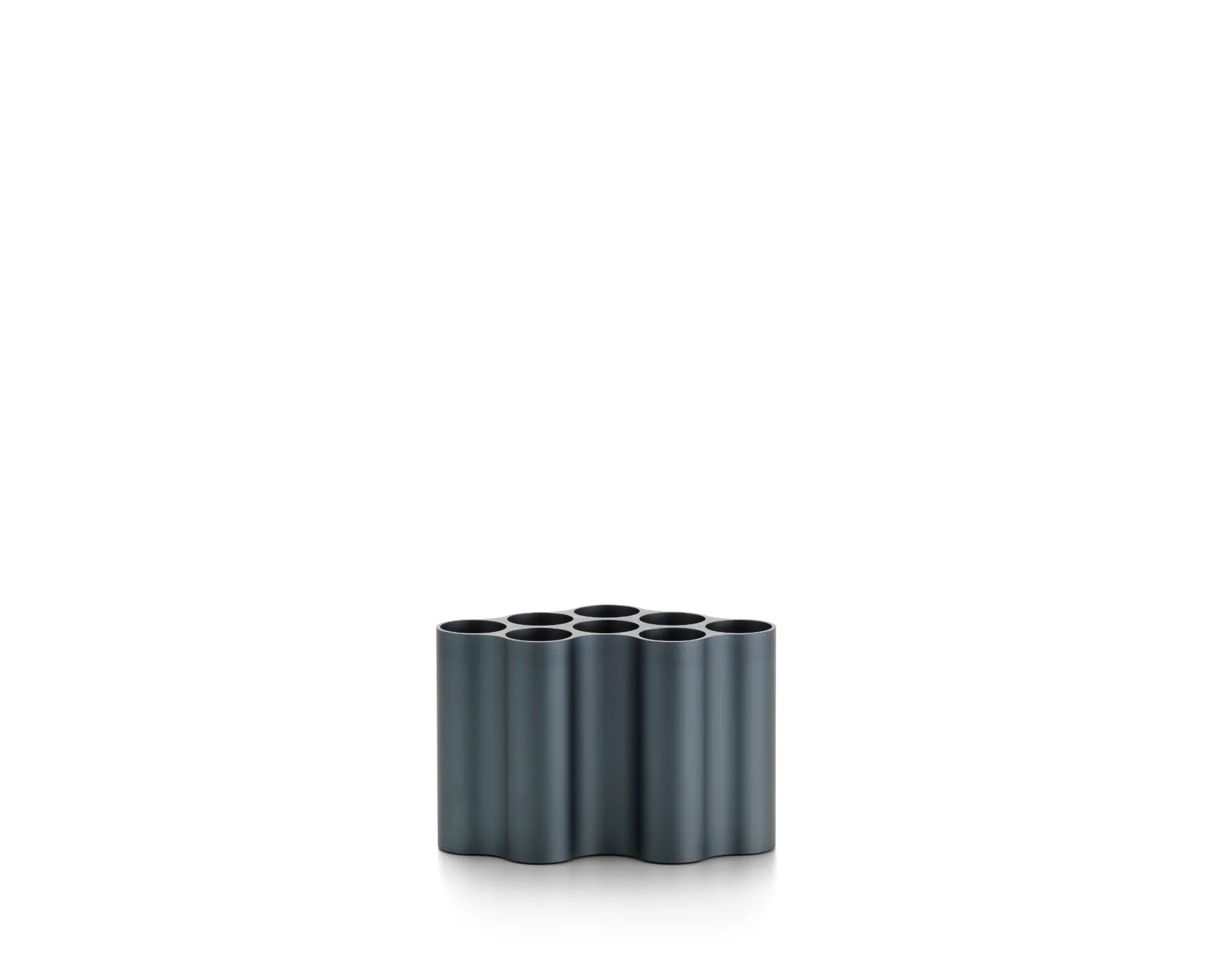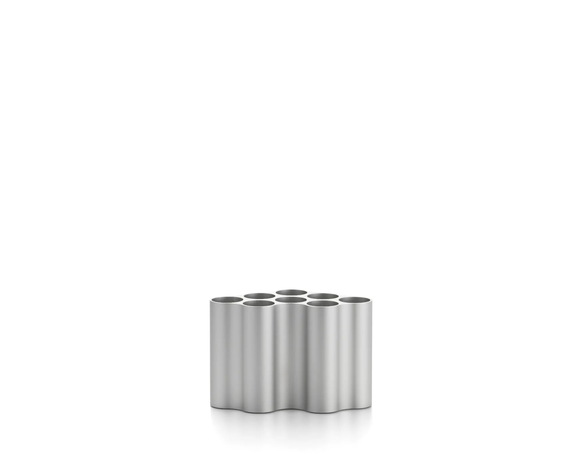 La forme des vases Nuage fit sa première apparition dans l‘œuvre de Ronan et Erwan Bouroullec en 2002. Évoquant un nuage, le motif a été produit à l‘origine en tant que module d‘étagère en plastique qui peut être rassemblé en groupes ou en configurations de grande taille. Huit cavités tubulaires sont percées dans les surfaces planes de l‘élément modulaire, définissant ainsi les contours extérieurs de la forme. Au fil des ans, les frères Bouroullec ont varié cette forme qu‘ils ont intégrée de façon réitérée dans leur travail graphique. Pour la création du vase Nuage, les créateurs ont réalisé le motif en différentes longueurs. Les cavités sont maintenant placées verticalement dans la forme de base, divisant le vase en huit tubes qui peuvent être utilisés pour des arrangements exceptionnels de fleurs et d‘herbes. Les surfaces ondulées créent un jeu d‘ombre et de lumière attrayant, les vases peuvent être assemblés de manière à créer de véritables formations nuageuses.
