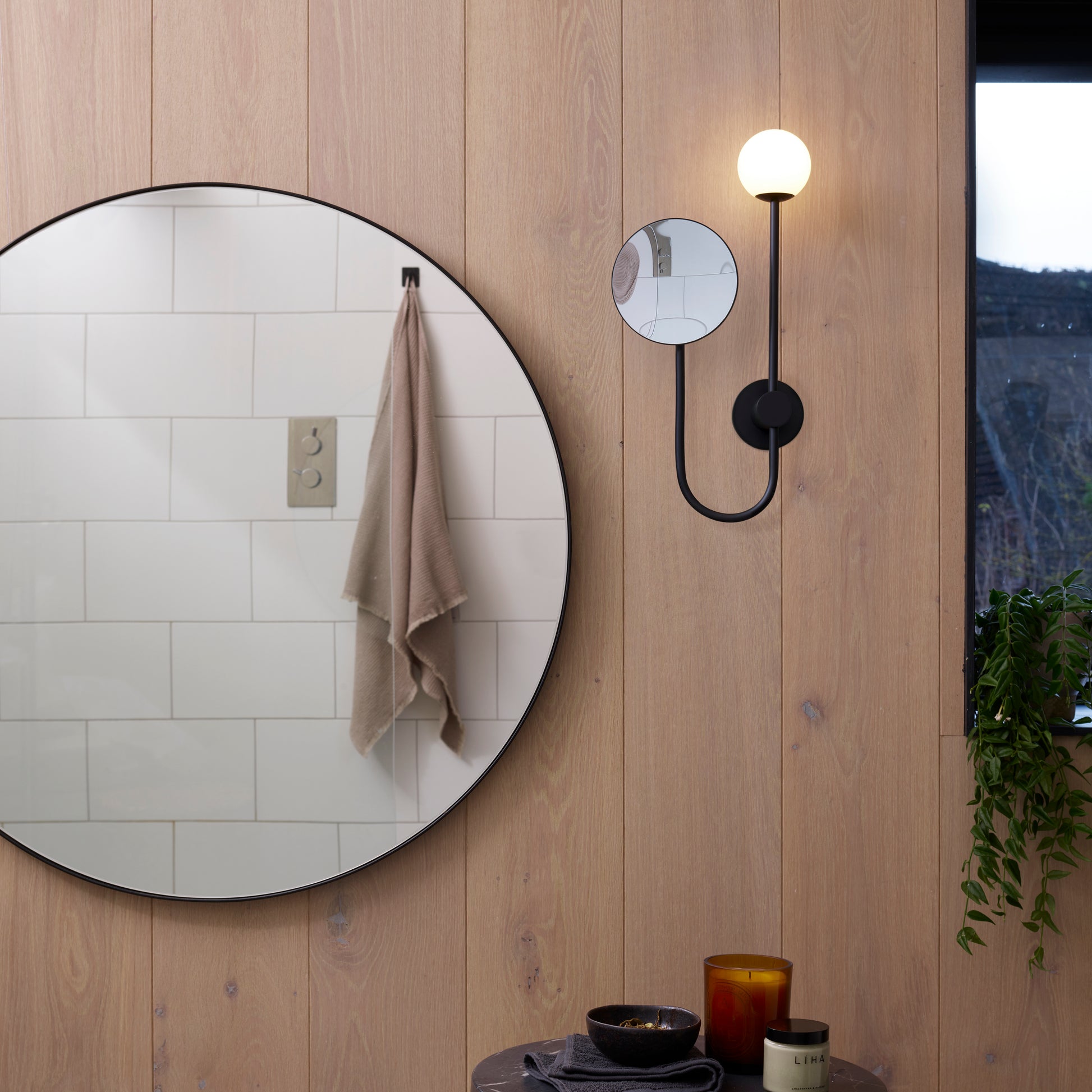 Orb offre un éclairage à la façon d'une boule sphérique. Elle est dotée d'un miroir entièrement réglable qui "tourne en orbite" autour du luminaire, en son centre. L’applique Orb noire sublime à merveille votre pièce d’eau en lui apportant chic et élégance. L’applique Orb est idéale pour les pièces humides grâce à son indice de protection IP44.