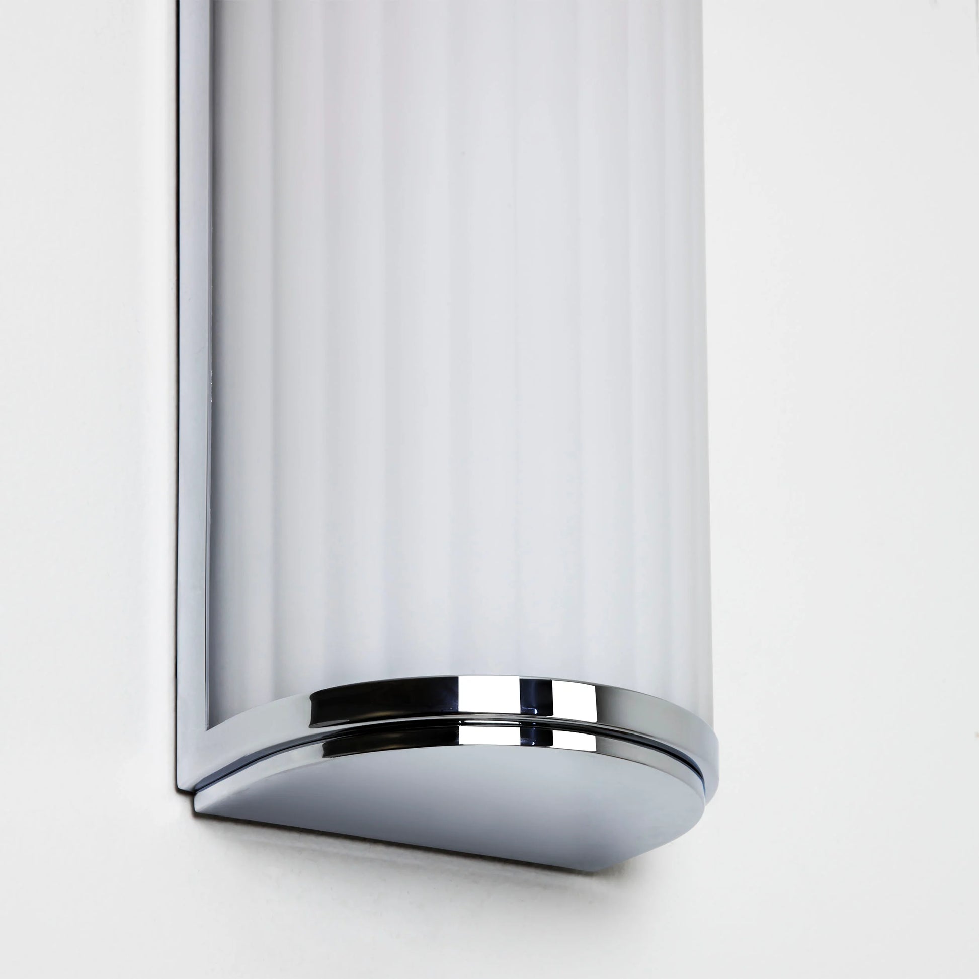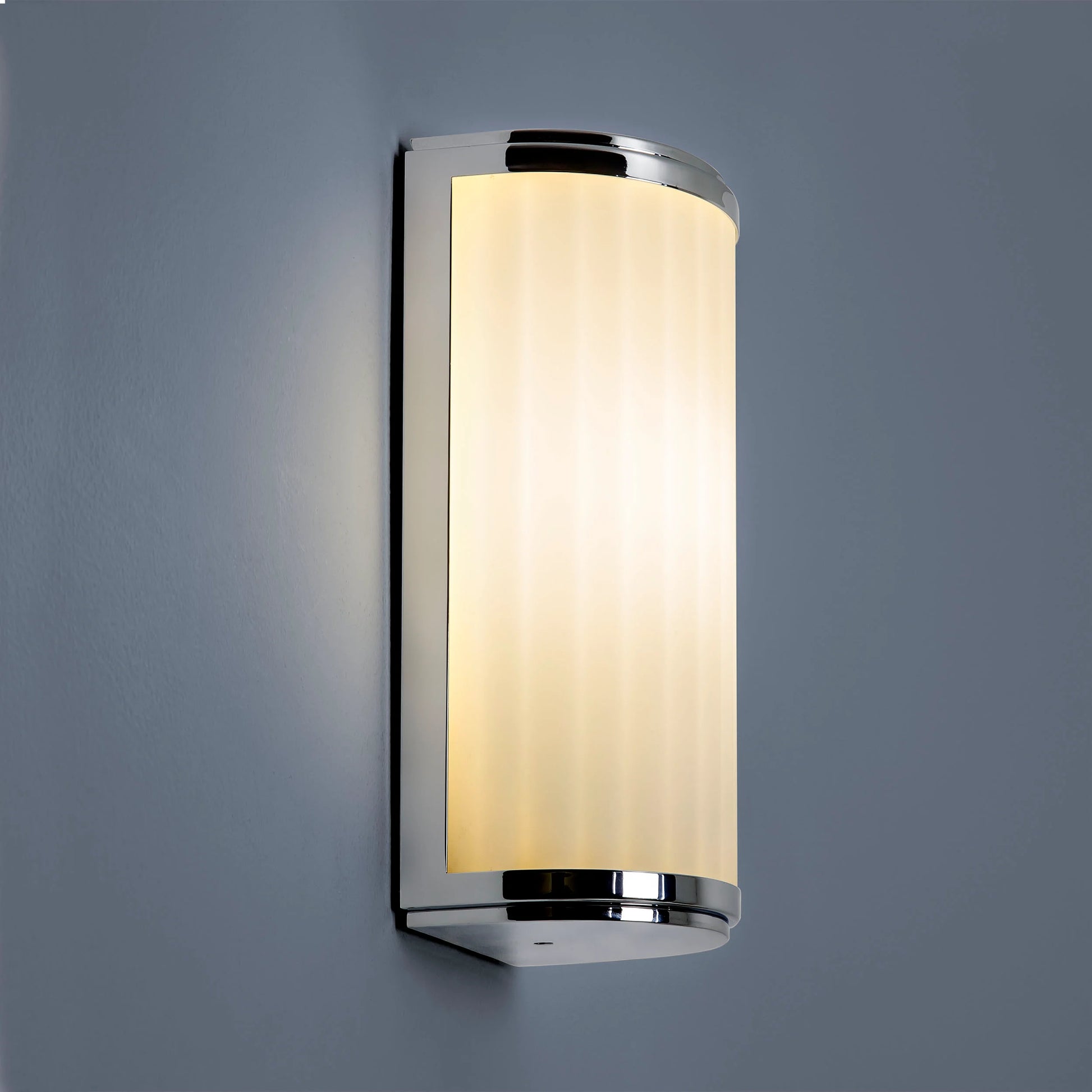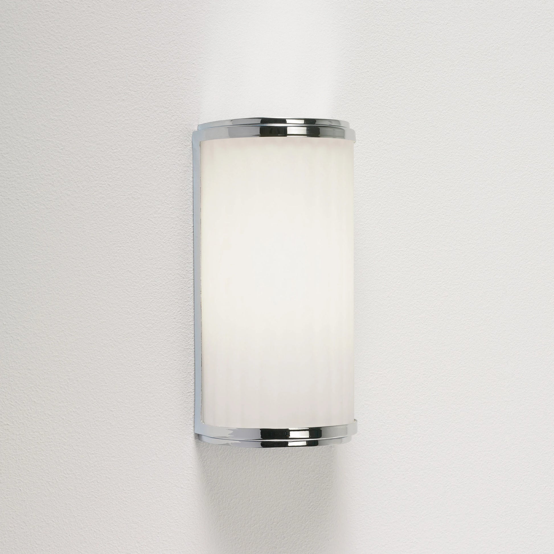 Son diffuseur en verre opalin légèrement strié offre une lumière douce et homogène, idéale pour les couloirs, les salles de bain (selon l’indice IP), ou les espaces de passage. Le cadre en métal finition chrome poli reflète la lumière avec sophistication, ajoutant une note brillante et décorative à vos murs.