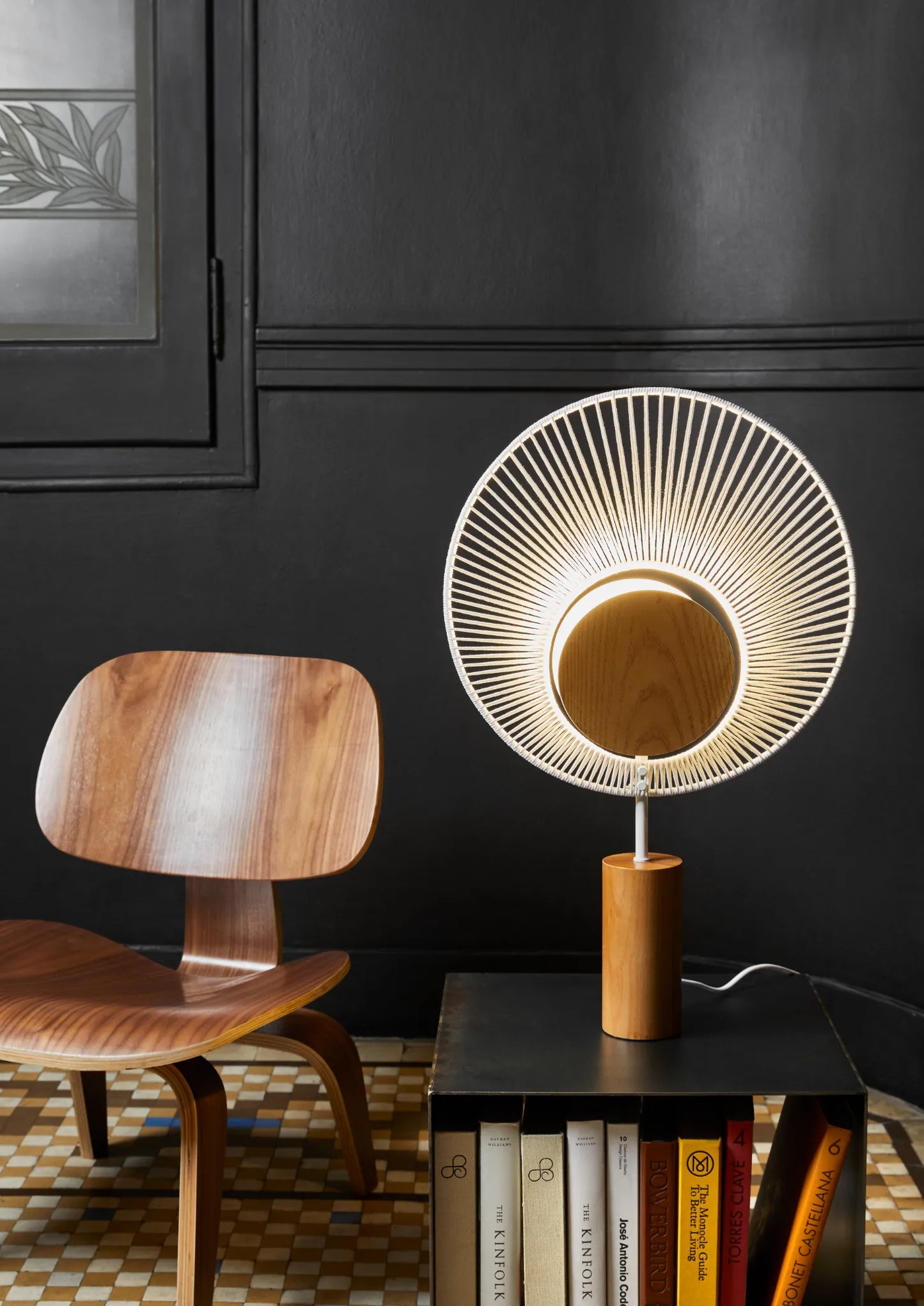 Elégance et lignes graphiques sont au rendez-vous avec cette sublime collection de luminaires Oyster signée Jette Scheib. Leur design évoque une huître renfermant à l’intérieur une perle qui diffuse une lumière précieuse. Oyster propose un savoureux mélange de matériaux. La base est en béton teinté noir. Le grand abat-jour rond et plat est constitué de fils de coton tressés sur une fine armature en métal.