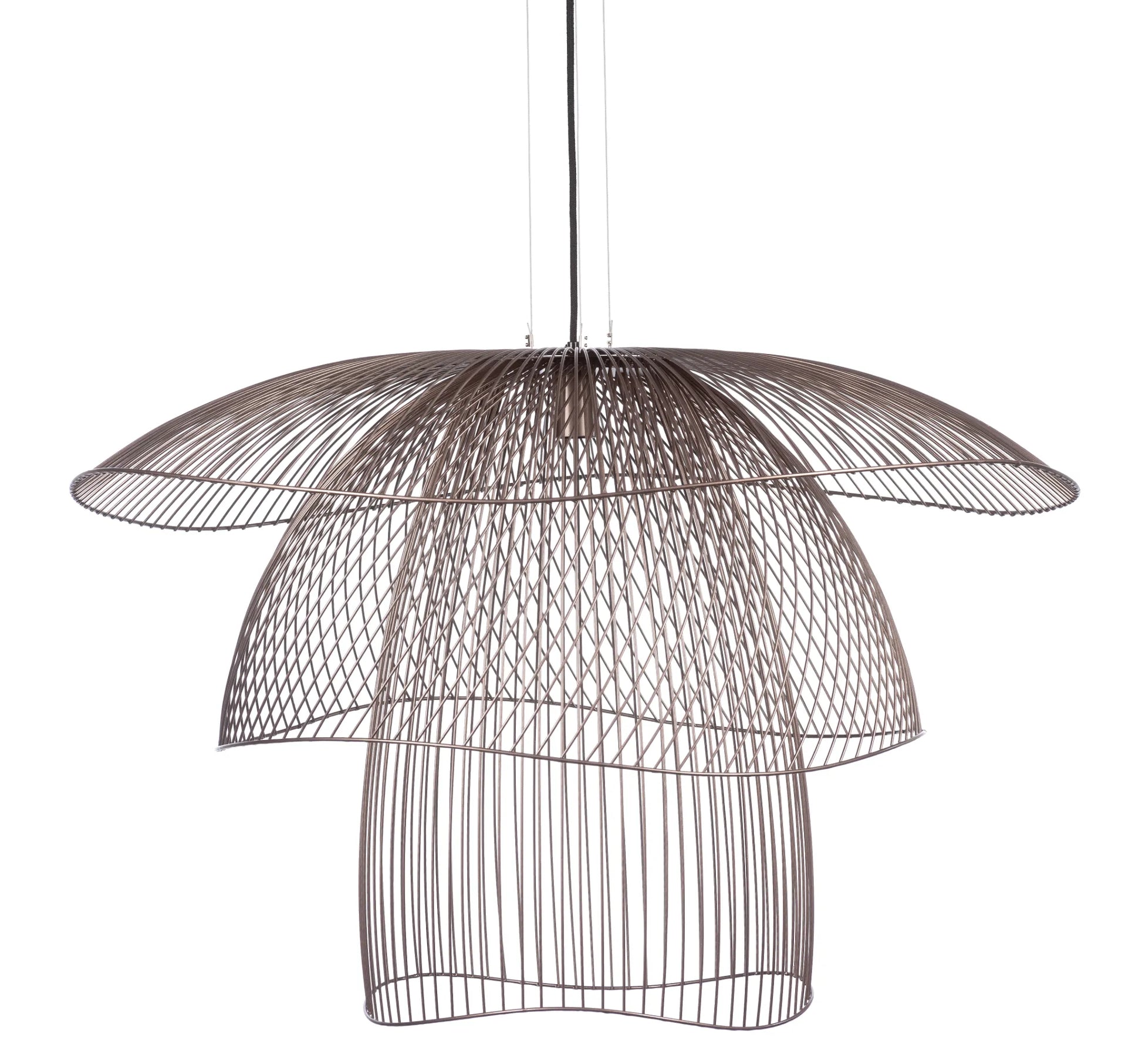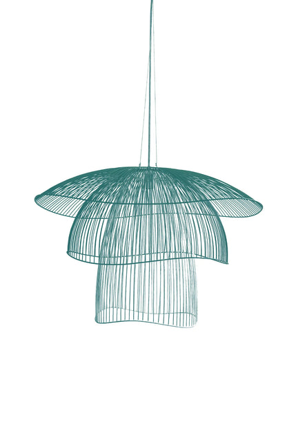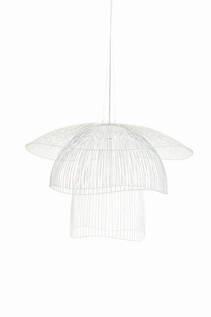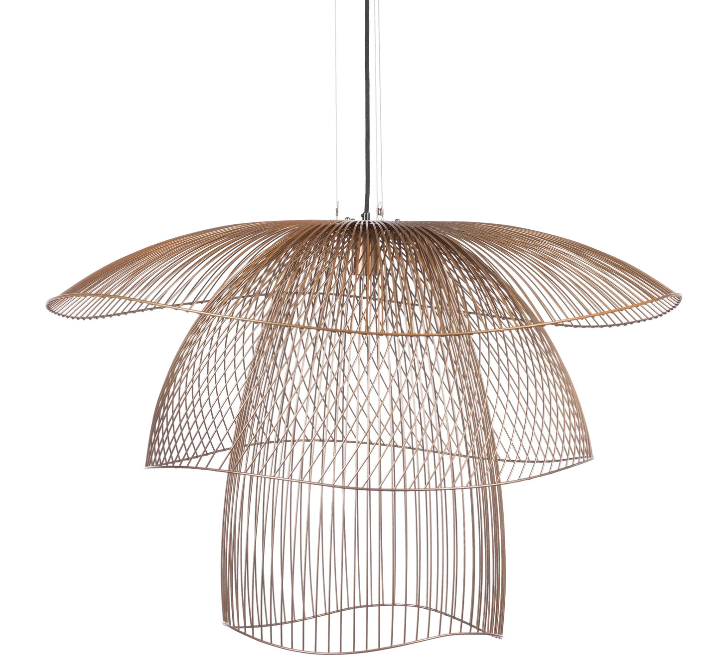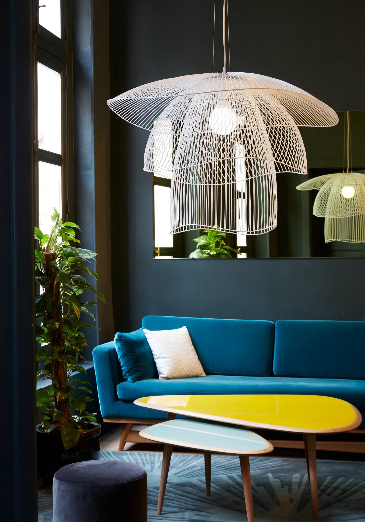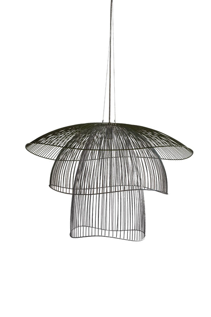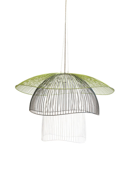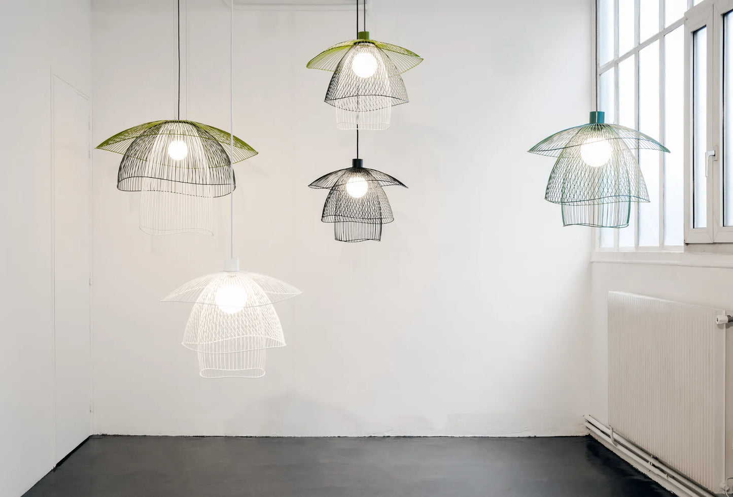 Sa forme aérienne rappelle le battement des ailes d'un papillon. Ce design original, unique et véritablement aérien permet l'illusion du mouvement, l'objet est léger et donne l'impression de voler. Cette suspension trouve parfaitement sa place dans un salon, une cuisine ou encore une chambre. Elle propose un éclairage doux, un design chic et poétique laissant refléter de magnifiques ombres aux murs tels un papillon.