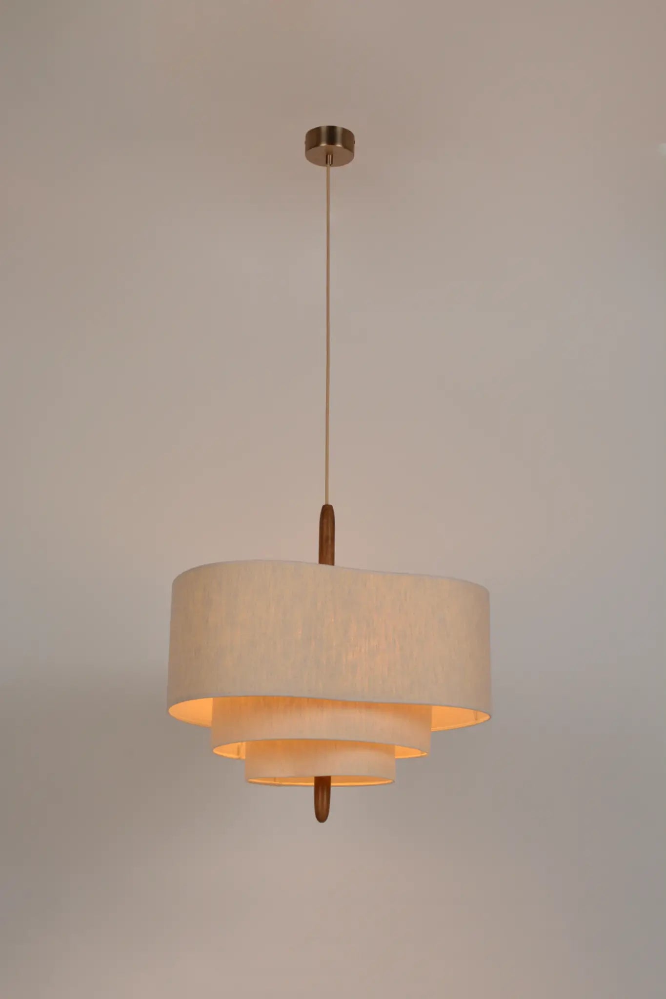Le tissu écru, un mélange subtil de coton et de lin, offre une texture douce et élégante, contrastant harmonieusement avec la force du bois teinté et l’éclat subtil du métal doré. Ce design, inspiré par les formes arrondies des galets, apporte confort et sérénité à la pièce. Fabriquée avec soin dans nos ateliers en France, cette suspension PEBBLE est une véritable œuvre d’art fonctionnelle, idéale pour transformer votre intérieur en un véritable havre de paix lumineux.