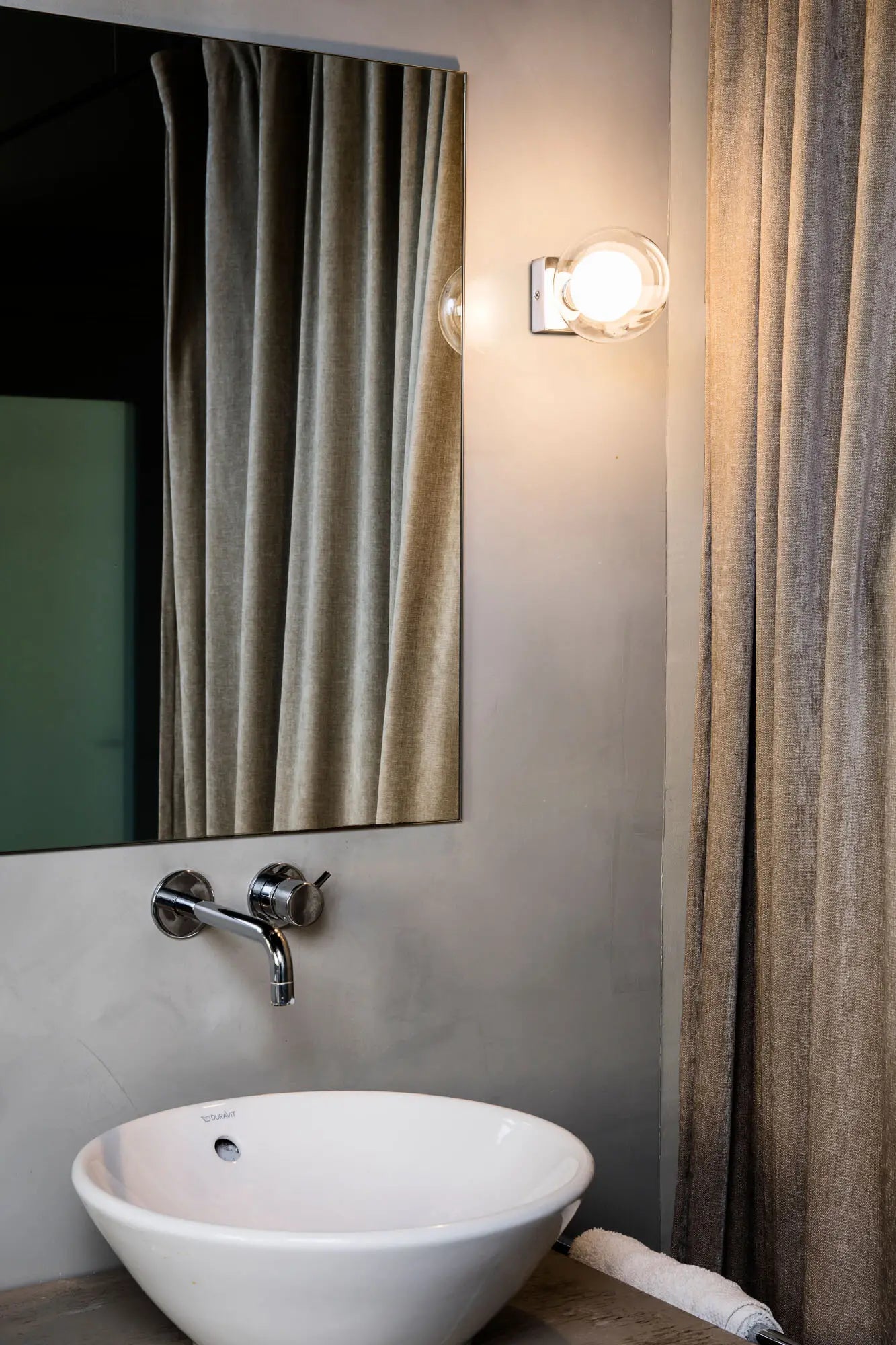 PERLA est une applique murale ou plafonnier au design arrondi, imaginée par Alex&Manel Lluscà. Conçue pour la salle de bains, elle se distingue par son diffuseur en verre transparent qui évoque une bulle, avec une finition intérieure opale pour une lumière douce et diffuse. Son corps en acier finition bronze apporte une touche d’élégance. Idéale à proximité d’un miroir, cette applique accueille une source lumineuse G9 (non incluse) et assure un éclairage ambiant confortable.