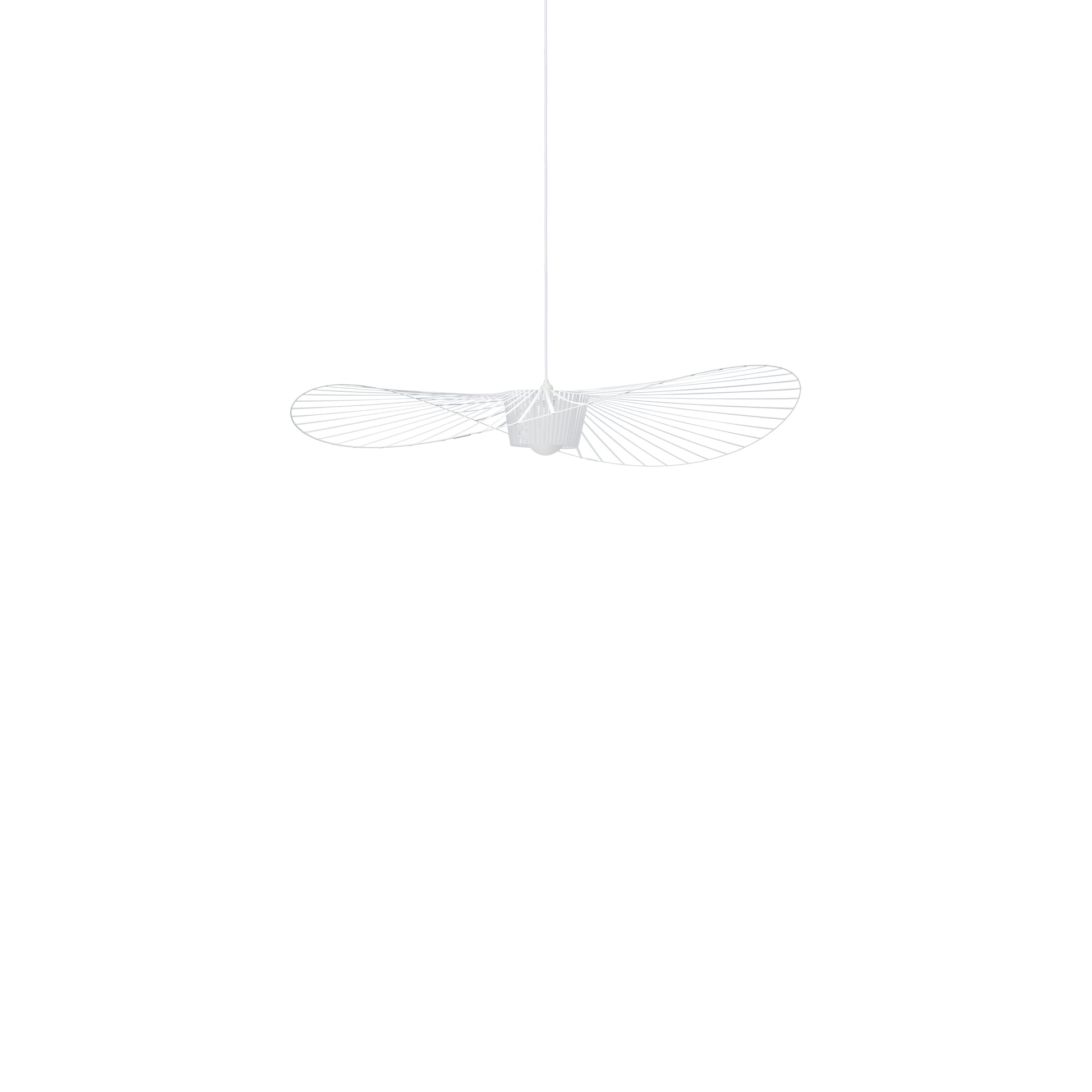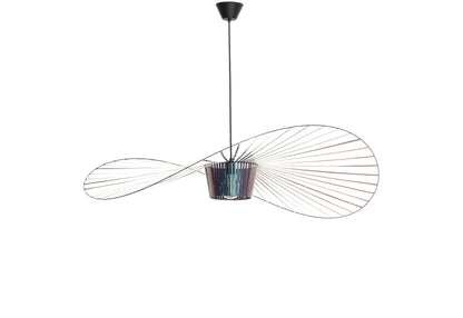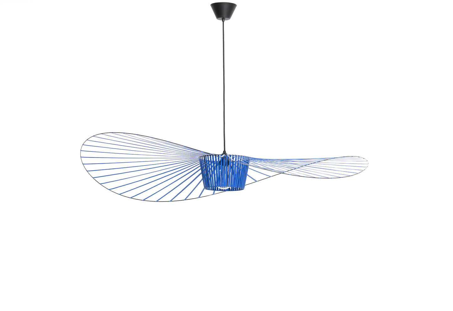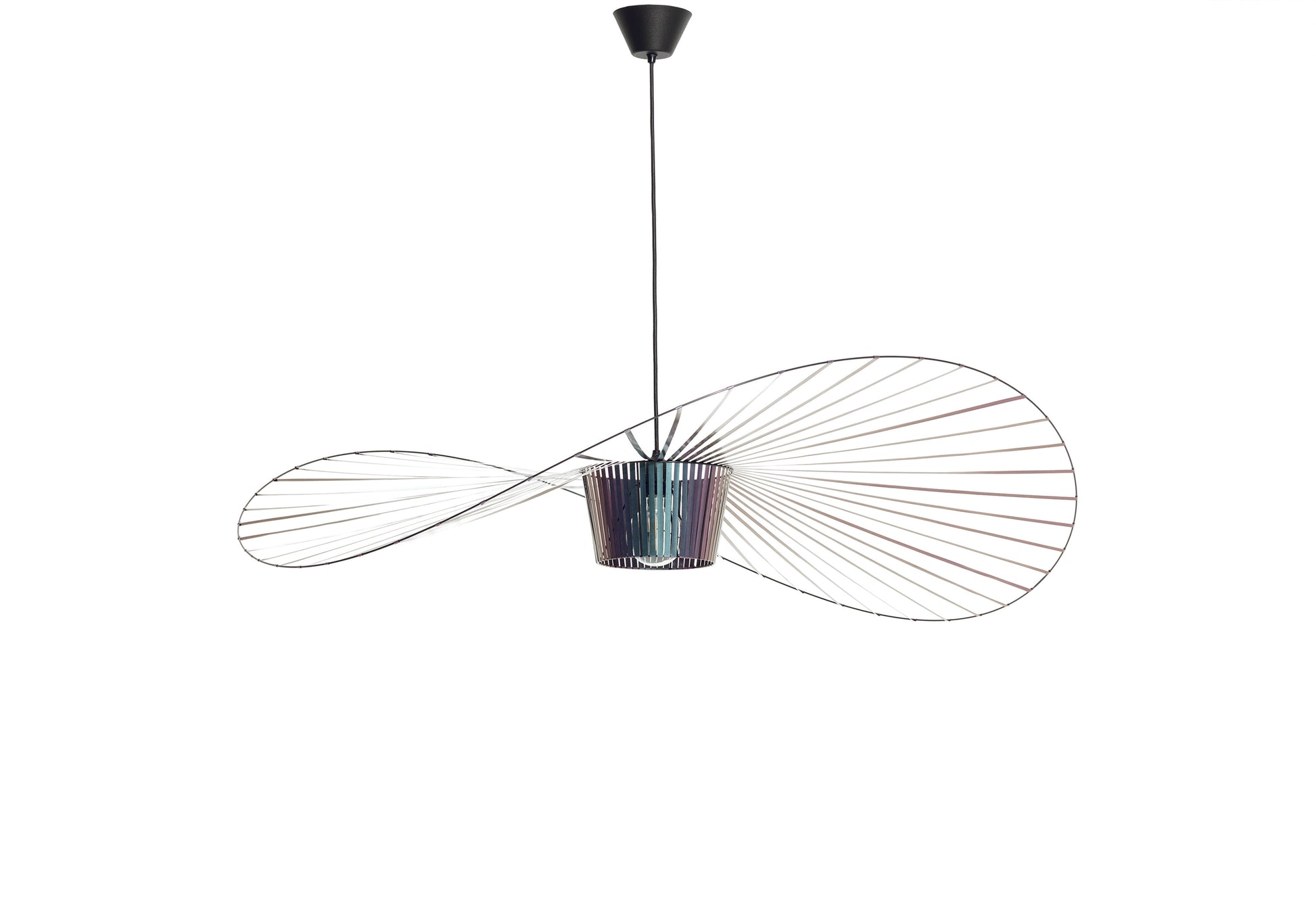 Vertigo est une « lampe cabane », selon les termes mêmes de son designer : à la fois aérienne et graphique, elle s’adapte aux grands volumes comme aux petits, où elle recrée un espace propre et intime. Structure ultralégère en fibre de verre, mise en tension par des rubans polyuréthanes au toucher velouté, cette suspension exerce une vraie fascination quand elle s’anime et prend vie au gré des courants d’air.