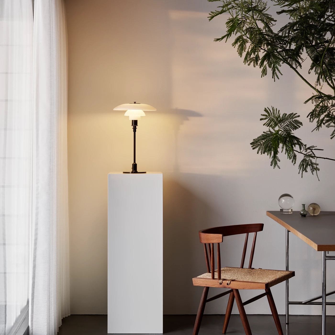 La PH 3/2 Lampe à poser est un modèle emblématique de la collection imaginée par Poul Henningsen, conçu pour offrir une lumière douce, agréable et non éblouissante. Grâce à son système de trois abat-jour en verre soufflé blanc opalisé, elle diffuse la lumière principalement vers le bas, tout en adoucissant les ombres et en évitant toute réflexion directe. Son design s’inspire de la fameuse « lampe de Paris » de 1925, créée en collaboration avec Louis Poulsen et récompensée d’une médaille d’or. Le modèle PH 3/2 associe un abat-jour supérieur de 30 cm à deux abat-jour inférieurs provenant du modèle 2/2, suivant le principe de la spirale logarithmique, garantissant une répartition uniforme de la lumière. Élégante et intemporelle, cette lampe est parfaite pour une table de chevet, un bureau ou une console, apportant une touche de design danois tout en assurant un confort visuel optimal.