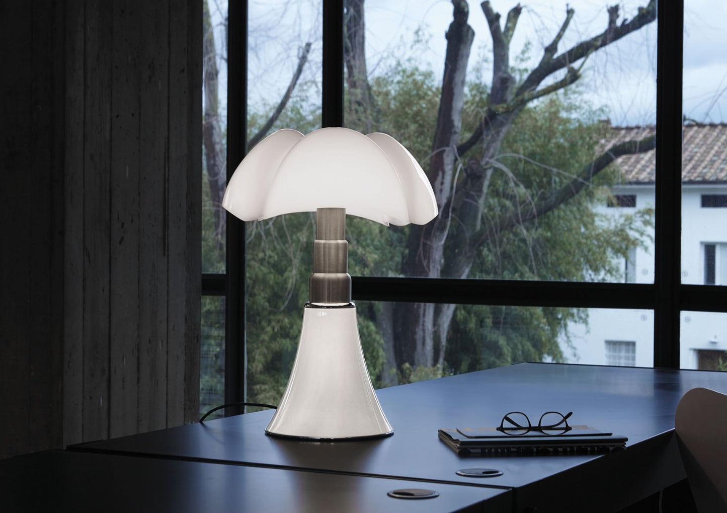 La Pipistrello, chef-d'œuvre de Gae Aulenti édité par Martinelli Luce, traverse les décennies avec modernité. Reconnue internationalement, elle fait partie de la collection permanente du MoMA.