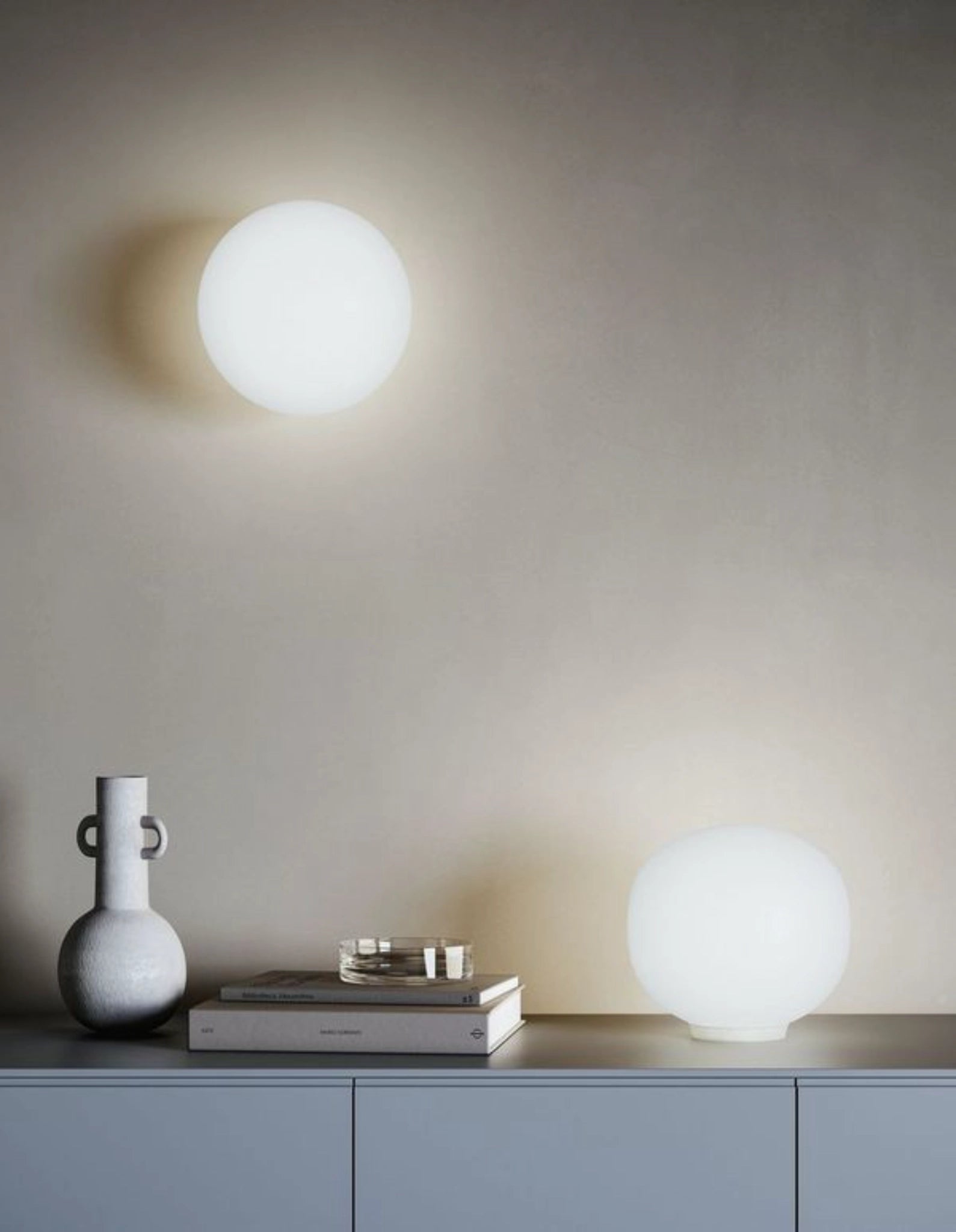 La série Volum revisite les archétypes de la technologie d'éclairage, alliant fonctionnalité et esthétique avec la touche artistique du verre dans toute la pièce. Volum diffuse la lumière uniformément à 360 degrés, créant une atmosphère uniforme et calme dans toutes les directions. Cette collection se décline en plusieurs luminaires : suspensions, appliques, plafonniers et lampes de table. Une solution d'éclairage unique conçue pour créer des compositions scénographiques, offrant une diffusion homogène et confortable de la lumière. Sa forme rappelle celle de bulles liquides dispersées dans l'atmosphère, le rendant idéal pour les environnements domestiques tels que les salons ou les cuisines. Bien que sa structure soit simple, Volum représente une étude raffinée des matériaux et de la technique, offrant ainsi une solution esthétique et pratique d'éclairage.
