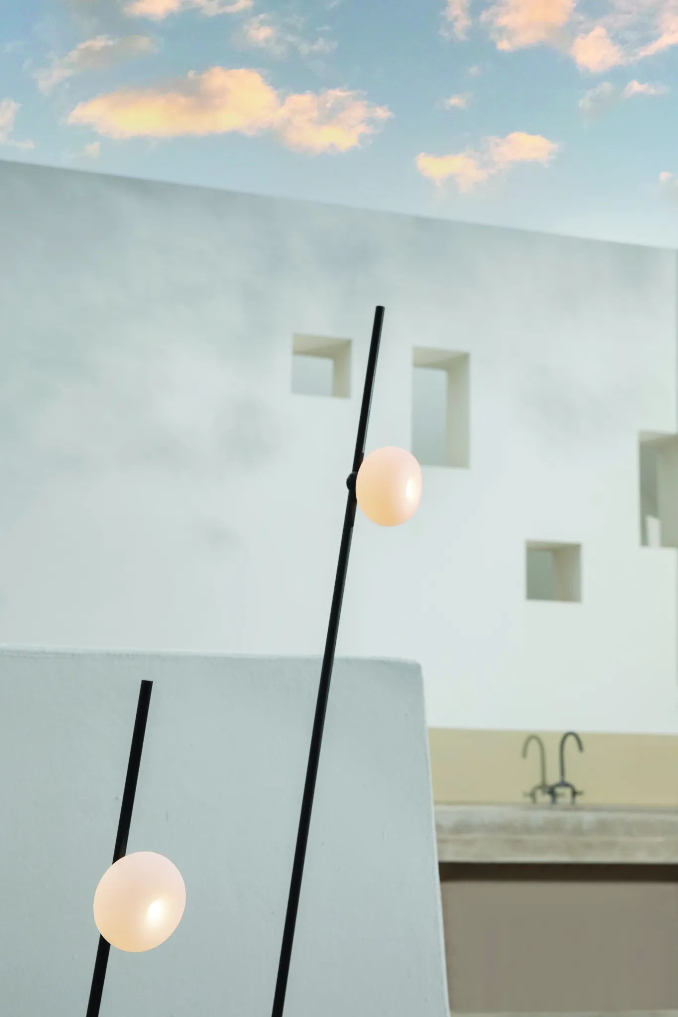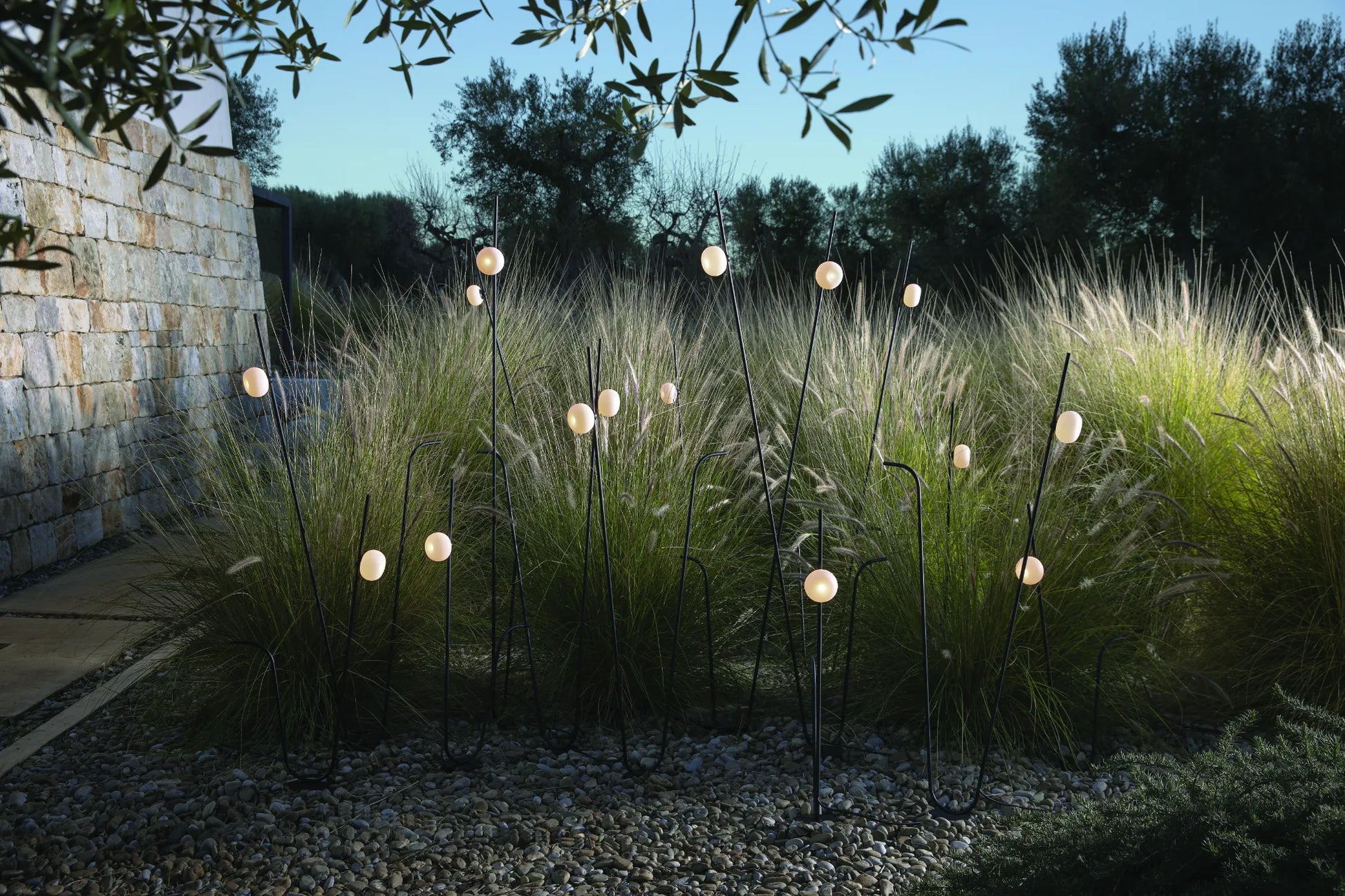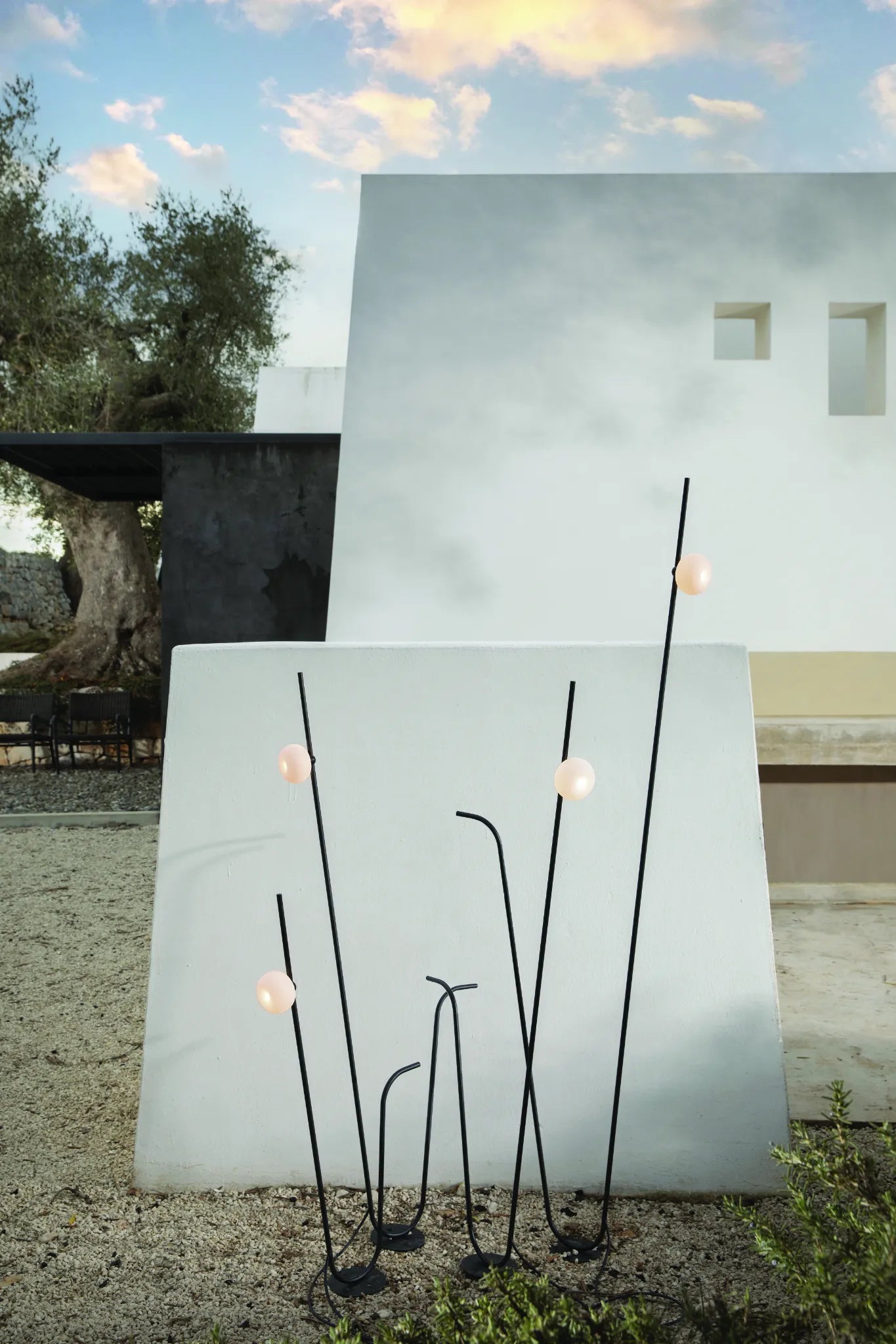 Des imprimés de tissus raffinés à la décoration extérieure, flottant sur des arrière-plans d'architecture saisissante ou de nature colorée, la lumière Pois se camoufle comme une luciole dans le jardin, lorgnant à travers les buissons. Vous pouvez effectuer une composition avec les différentes hauteurs disponibles.