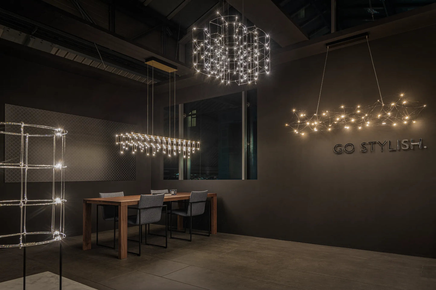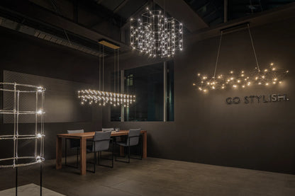 La suspension Cosmos est idéale pour éclairer une grande table ou un bureau. La diffusion de la lumière est efficace sans éblouir, et le scintillement des ampoules rend l'objet magique et poétique.