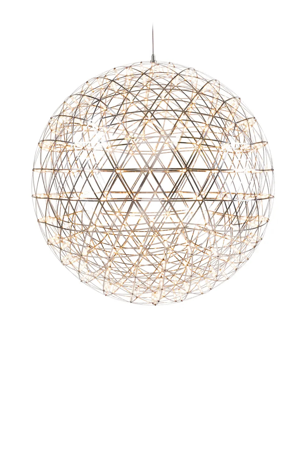 Les lumières Raimond : des sphères parfaites d'ingrédients mathématiques ponctuées de minuscules lumières LED. Le designer Raimond Puts n'était pas seulement intrigué par la forme du dôme géodésique, mais aussi par le mystère des nombres premiers. Ce n'est pas un hasard si les dimensions des luminaires Raimond ont pour valeurs des nombres premiers. Le résultat de la perfection mathématique, qui fait entrer le ciel étoilé dans votre maison. Compatible avec notre interrupteur mural sans fil, pour une gradation rapide et facile qui vous donne un contrôle total sur la puissance lumineuse.