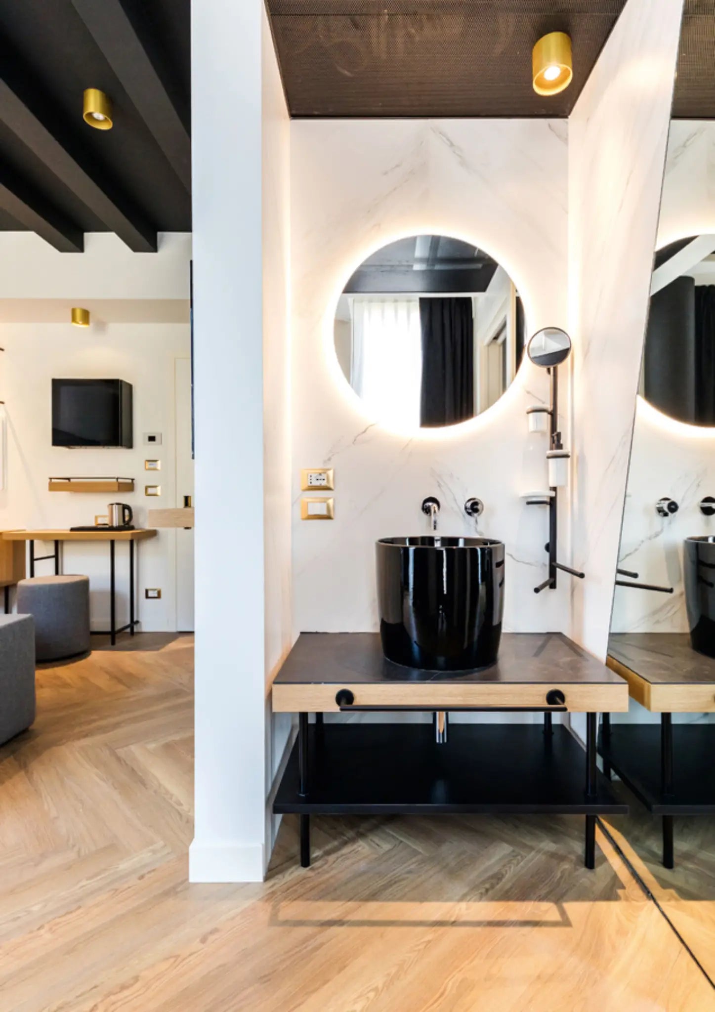 Doté de la technologie COB (Chip on Board), il offre une lumière chaude de 2700K avec un rendu des couleurs élevé (CRI ≥ 90) et un excellent contrôle de l’éblouissement (UGR ≤ 13). Conforme à la norme DIN EN 12464-1, il est adapté aux postes de travail avec écran, garantissant un confort visuel optimal.