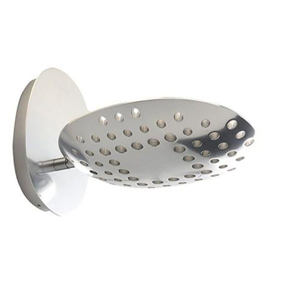 Légèreté visuelle et thermodynamisme sont les principales caractéristiques de ce projet: la tête, en aluminium moulé sous pression, est de forme appropriée et perforée pour former une interface visuellement perméable à l’espace dans lequel l’applique se trouve et facilite l’échange de chaleur, ce qui garantit une dissipation optimale de celle-ci, produite par la source de lumière. L’applique pivote sur deux axes ce qui permet aux utilisateurs d’interagir avec l’appareil et de déterminer facilement la lumière la plus adaptée à leurs besoins. Une source LED unique de dernière génération de seulement 42W garantie les mêmes valeurs d’éclairement qu’une source halogène de 400W.
