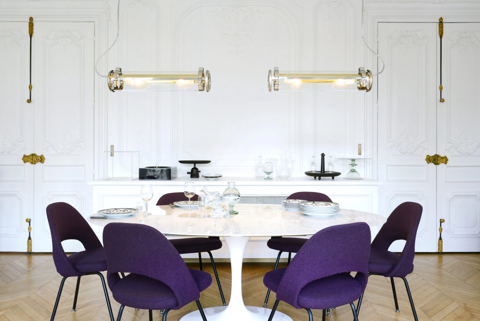 Issu de l’histoire industrielle de Sammode, ce luminaire iconique et incontournable s’adaptera parfaitement à vos grands espaces. Majestueux et intemporel, il apportera charme et caractère au-dessus de votre table ou en applique dans votre bureau. Suspendu par ses filins en acier, il se dévoile entièrement et semble flotter dans les airs. Son corps en verre révèle la qualité de ses finitions : réflecteur brillant (doré, cuivré ou argenté) ou brossé (laiton ou gris-bleuté), douilles en céramique et subtiles ampoules à filament LED. Le Rimbaud donnera vie à chaque pièce et sublimera votre cuisine ou façade extérieure. Ce luminaire est livré avec sa source ainsi que sa sortie murale et équipé de son câble. Tous les luminaires Sammode Studio sont fabriqués, assemblés et emballés dans l'usine à Châtillon-sur-Saône dans les Vosges.