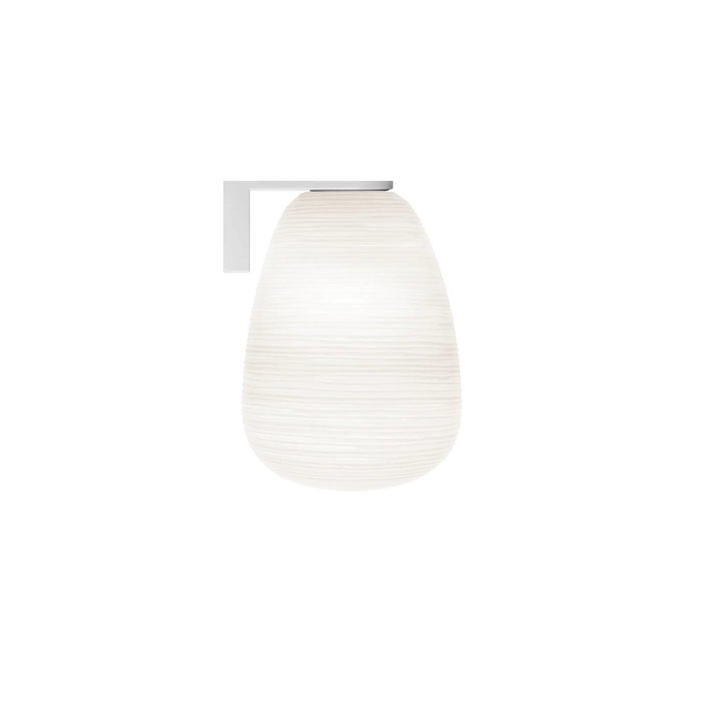 Les lampes Rituals en verre soufflé sont caractérisées par la surface du diffuseur striée de lignes irrégulières. Rituals 1 présente un volume qui ne passe pas inaperçu, parcouru par de légères ondulations qui contribuent à produire une lumière chaude et émotionnelle. Semblable au piédestal d’une œuvre d’art, le support en forme de L de la version murale permet différentes solutions d’installation, vers le haut ou vers le bas.