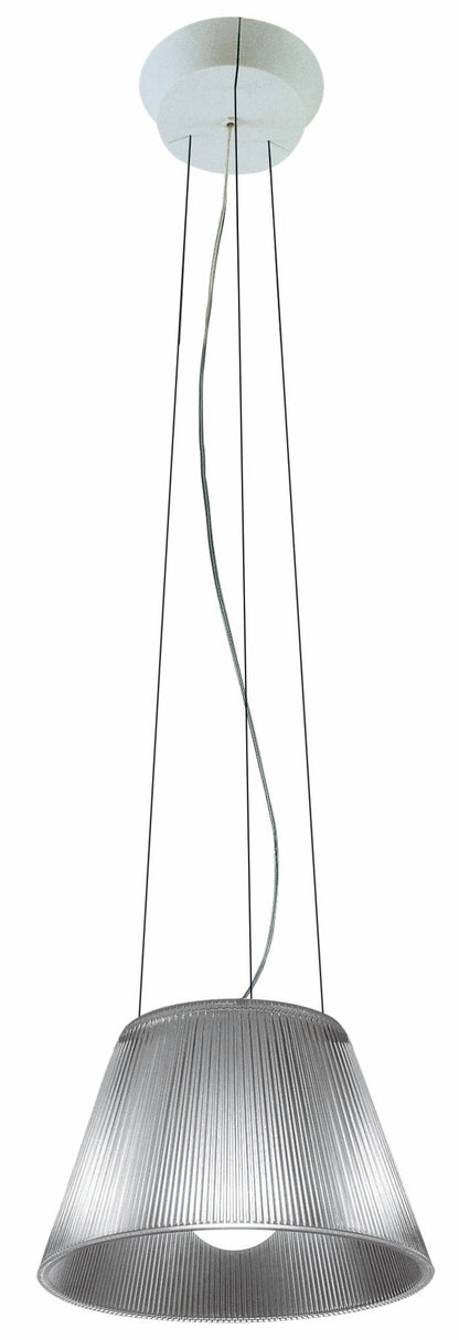 Une conception classique de 1996, signée Philippe Starck. La suspension Romeo Moon S1 by FLOS et son superbe abat-jour de verre cannelé. La suspension Romeo Moon S1 arbore un abat-jour qui se distingue de par son design cannelé, très fortement marqué. Ce style rappelle avec nostalgie le design représentatif des luminaires des décennies passées. Grâce à la transparence et à la clarté de l'abat-jour, la suspension apporte une touche de légèreté qui s'invite volontiers dans toutes les pièces de votre intérieur. Un éclairage légèrement tamisé qui vous plonge dans une ambiance des plus agréables, et qui conviendra à merveille pour éclairer une table de repas.