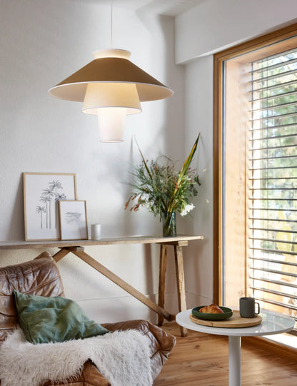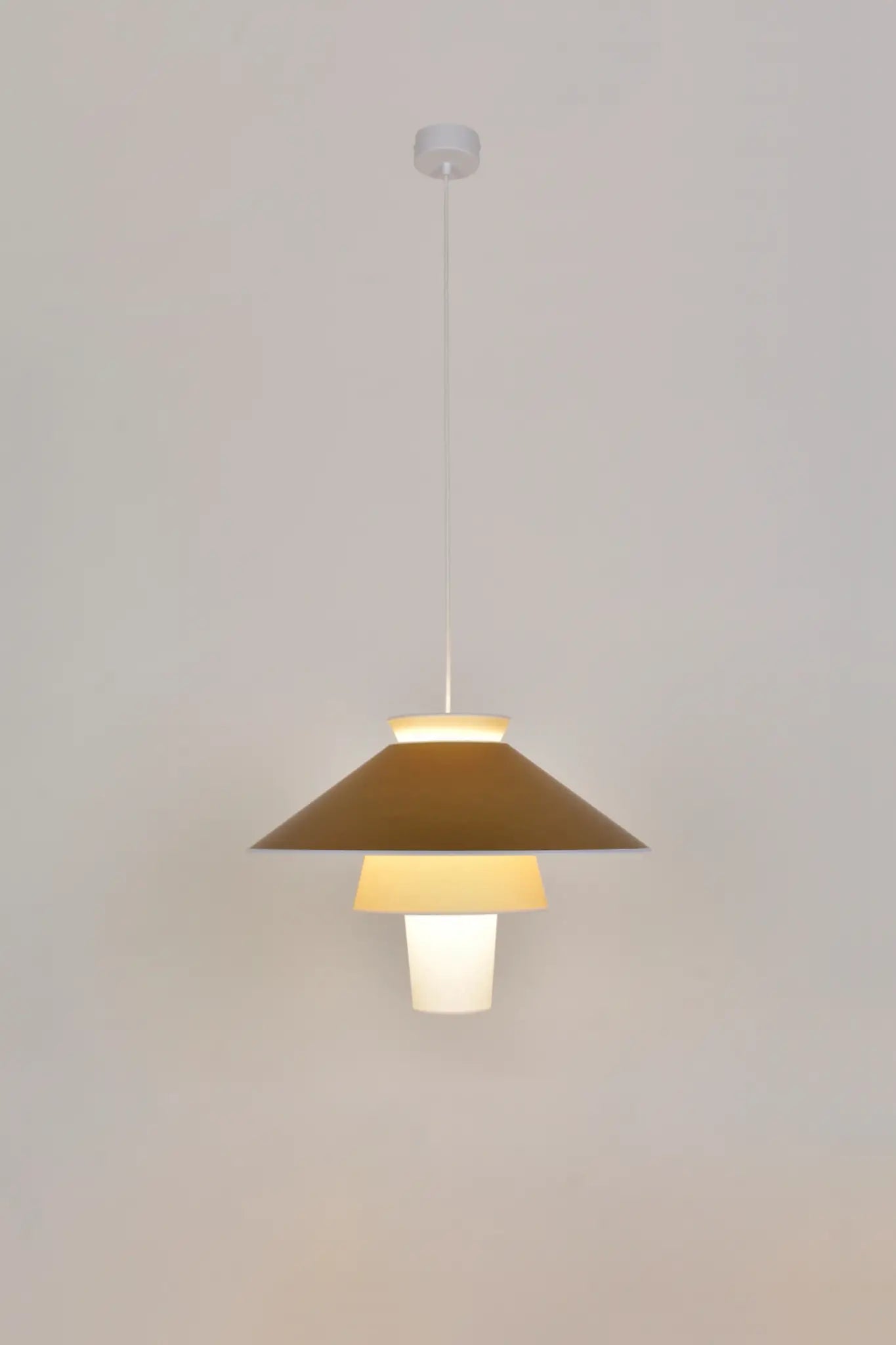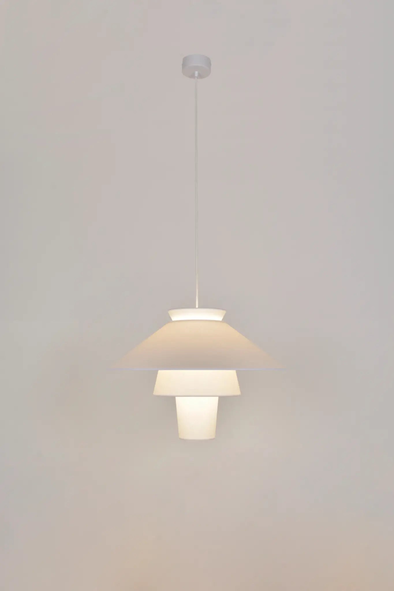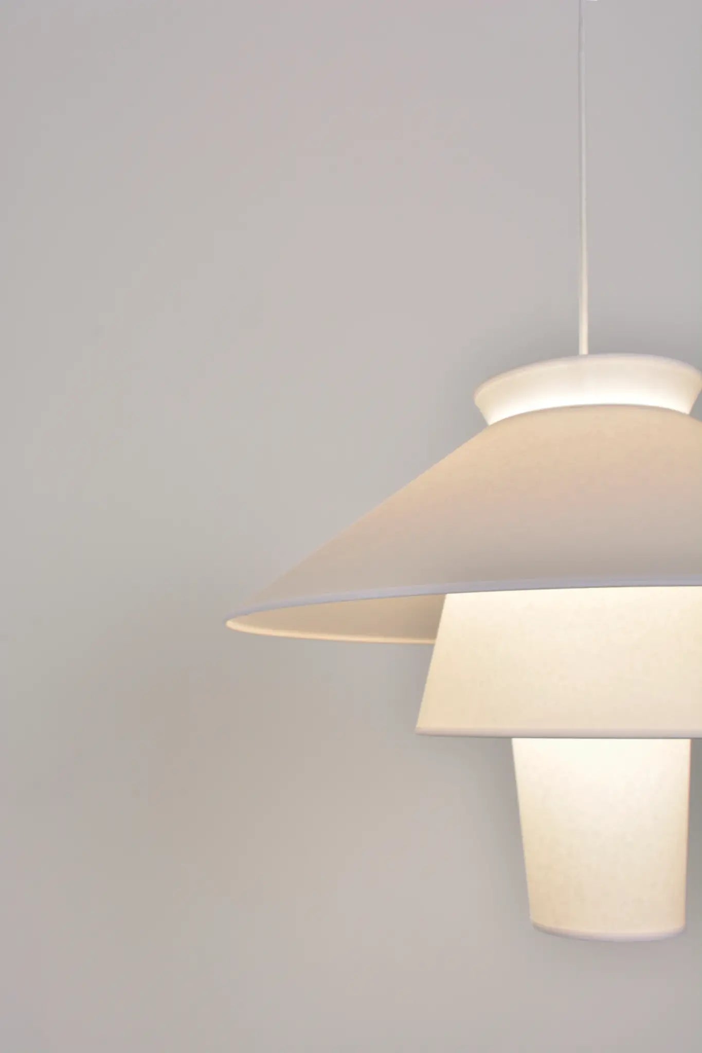 Son design épuré et ses abat-jour en papier Murano ajoutent une texture lumineuse qui se fond parfaitement dans tous types d’intérieurs, du plus classique au plus contemporain. L'accumulation de ces abat-jour crée un jeu de lumière fascinant qui met en valeur l’espace tout en apportant un caractère unique. Cette suspension se distingue non seulement par sa simplicité, mais aussi par la qualité de ses matériaux, qui lui confèrent une véritable élégance et une touche de raffinement discrète.