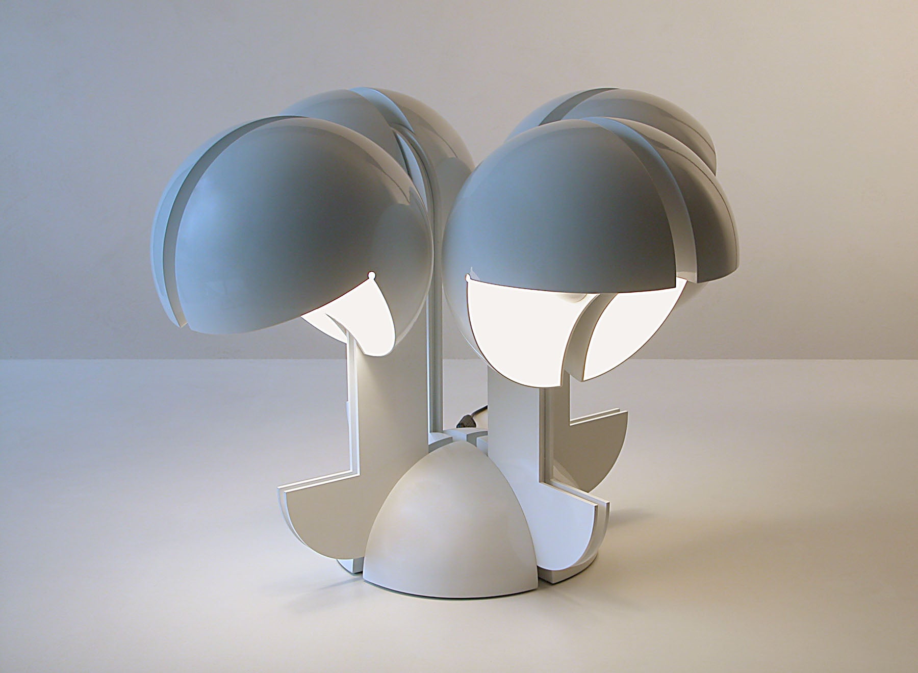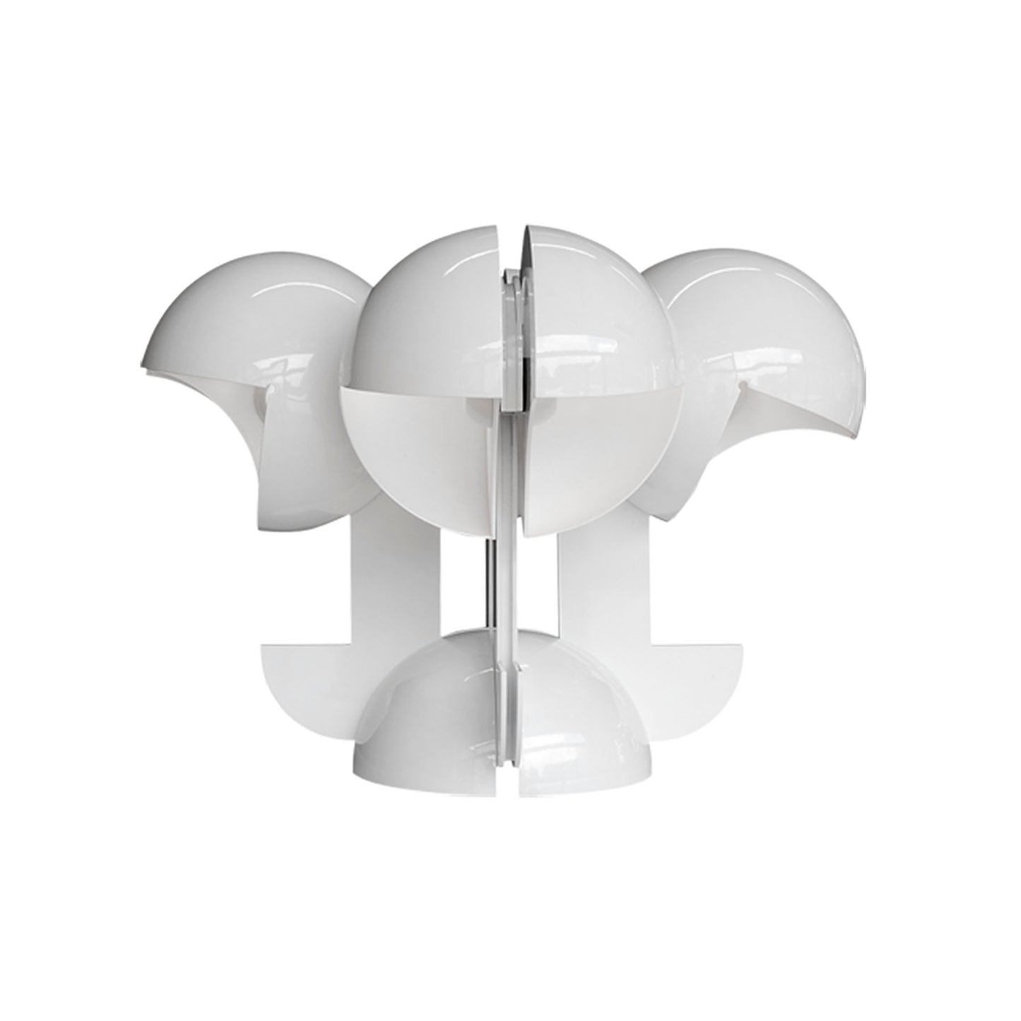 Cette lampe à poser Ruspa ultra design a été créée par Gae Aulenti en 1968. Ce grand classique du design est présent dans tous les plus grands musées d'Art Contemporain, dont le MOMA à New-York. Sa structure en aluminium blanc a un aspect brillant. Mobile, la lampe Ruspa peut être visionnée de multiples manières. Les deux demies-sphères sont articulables et indépendantes. Vous pourrez ainsi orienter l'éclairage.