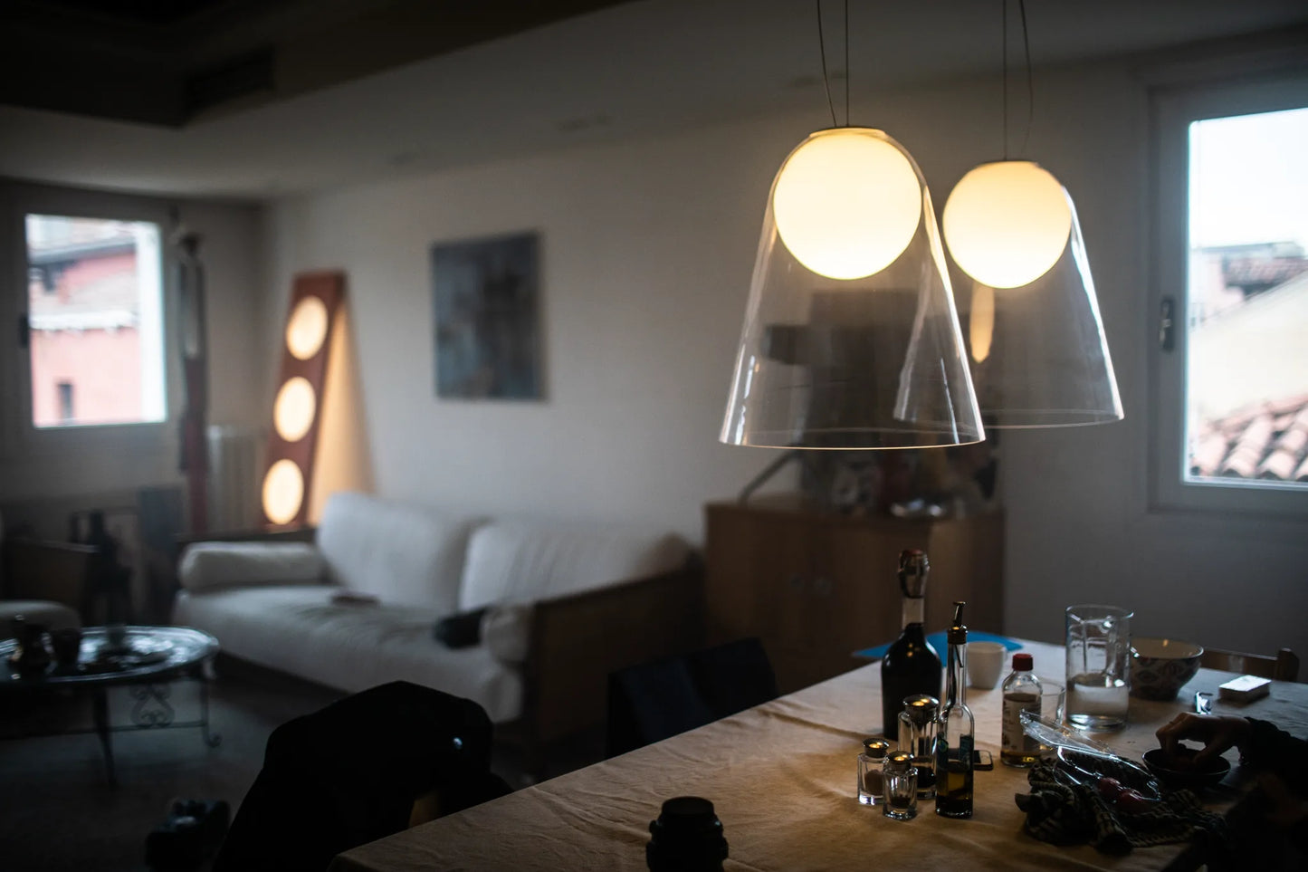Telle une lune suspendue dans le vide, la suspension Satellight, entièrement réalisée en verre soufflé à la bouche, présente un design poétique et surprenant.