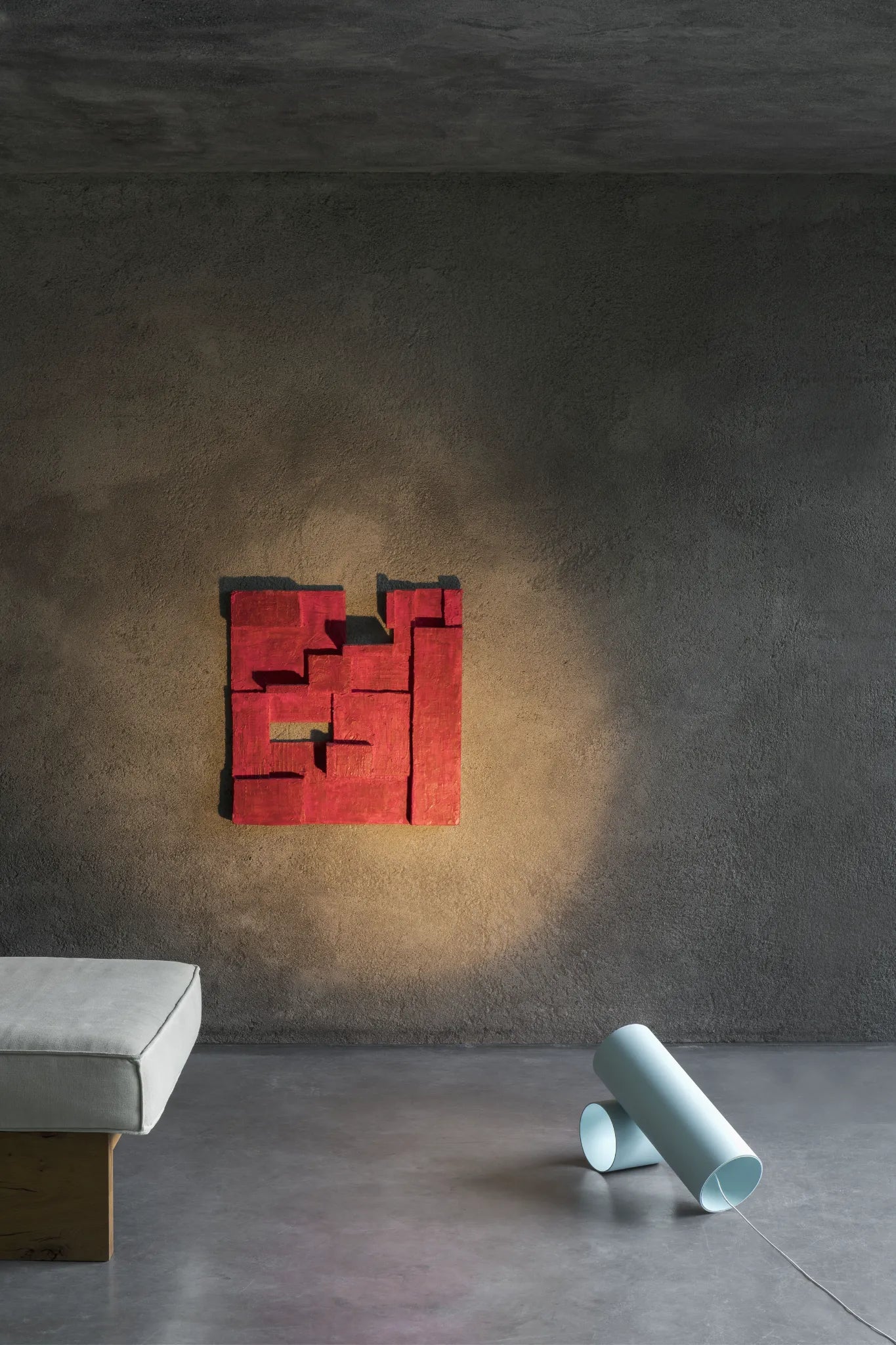 Sawaru est une lampe à poser conçu par Nendo pour Flos. Il possède une base et un corps en aluminium ainsi qu'un diffuseur en polycarbonate photogravé moulé par injection. Celui-ci permet un faisceau lumineux large et agréable. Une lampe constituée de deux cylindres indépendants qui se touchent en perpendiculaire. L’un joue le rôle de source lumineuse tandis que l’autre sert de base: l’angle de projection peut être réglé sur 3 positions:25, 40 et 60 degrés.
