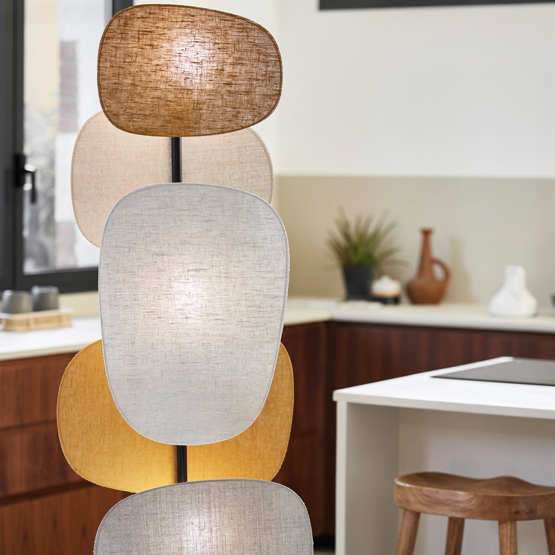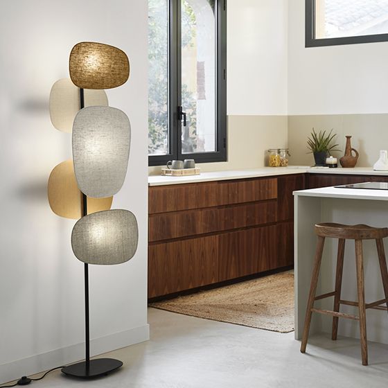 La collection Screen 70's nous fait voyager dans le temps, avec une toute nouvelle forme d’écrans rétro inspirés du design graphique des années 70. Dans un mix inédit de matières toujours plus cosy, cette nouvelle version, dessinée et façonnée dans nos ateliers en France, joue sur un équilibre parfait des couleurs et du contraste chaleureux et indémodable de sa palette de tons de terre. La toile de jute, le lin lavé Curry et le tout nouveau lin Bouleau sélectionnés avec soin sont des tissus 100% lin Européen. Ce lampadaire nécessite l'achat de 2 ampoules.