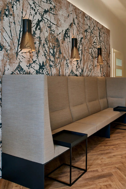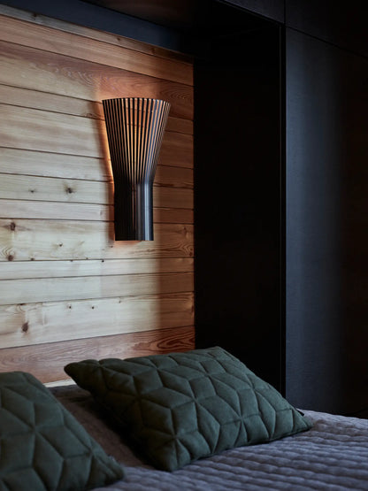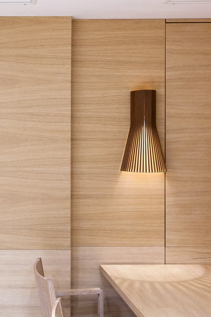 Cette collection emblématique est déclinée en plusieurs modèles (suspension, applique murale, lampe à poser et lampadaire) que vous pourrez associer pour créer un ensemble harmonieux et raffiné. La face interne des lamelles est toujours en bouleau naturel. La lumière est dirigée vers le bas et s'échappe sur les côtés entre les lamelles. Ampoule LED incluse.