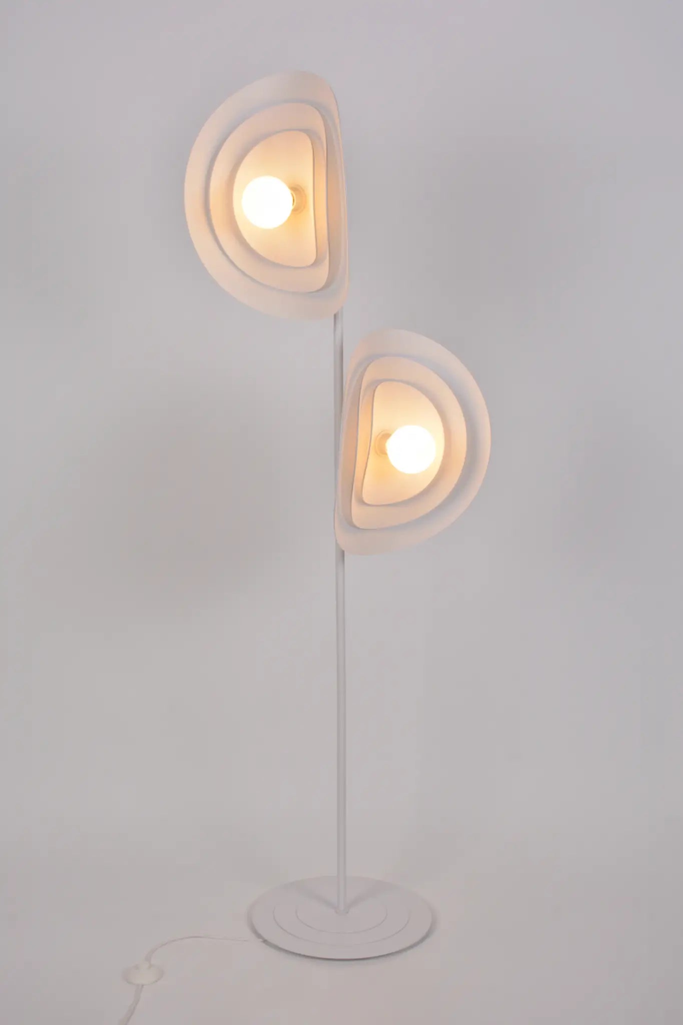 Ce lampadaire à deux lumières combine modernité et élégance avec une base en métal peint, offrant une silhouette épurée et contemporaine. Son cordon textile avec interrupteur au pied assure une utilisation simple et pratique, tout en ajoutant une touche de raffinement à l’ensemble.