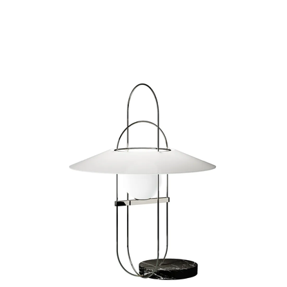 Setareh est né de l'idée de donner du corps à la lumière. La lampe est composée par une boule de verre satiné blanc soufflé à la bouche et suspendue comme par enchantement à l'intérieur d'une structure métallique mince. Un jeu de masses et de trajectoires circulaires génère un design équilibré par des dynamiques gravitationnelles. La lumière qui se dégage de la boule se diffuse sur l'espace environnant et éclaire le bâti. Les reflets du métal rendent visible le champs lumineux, l'espace influencé par la lumière, son aura.