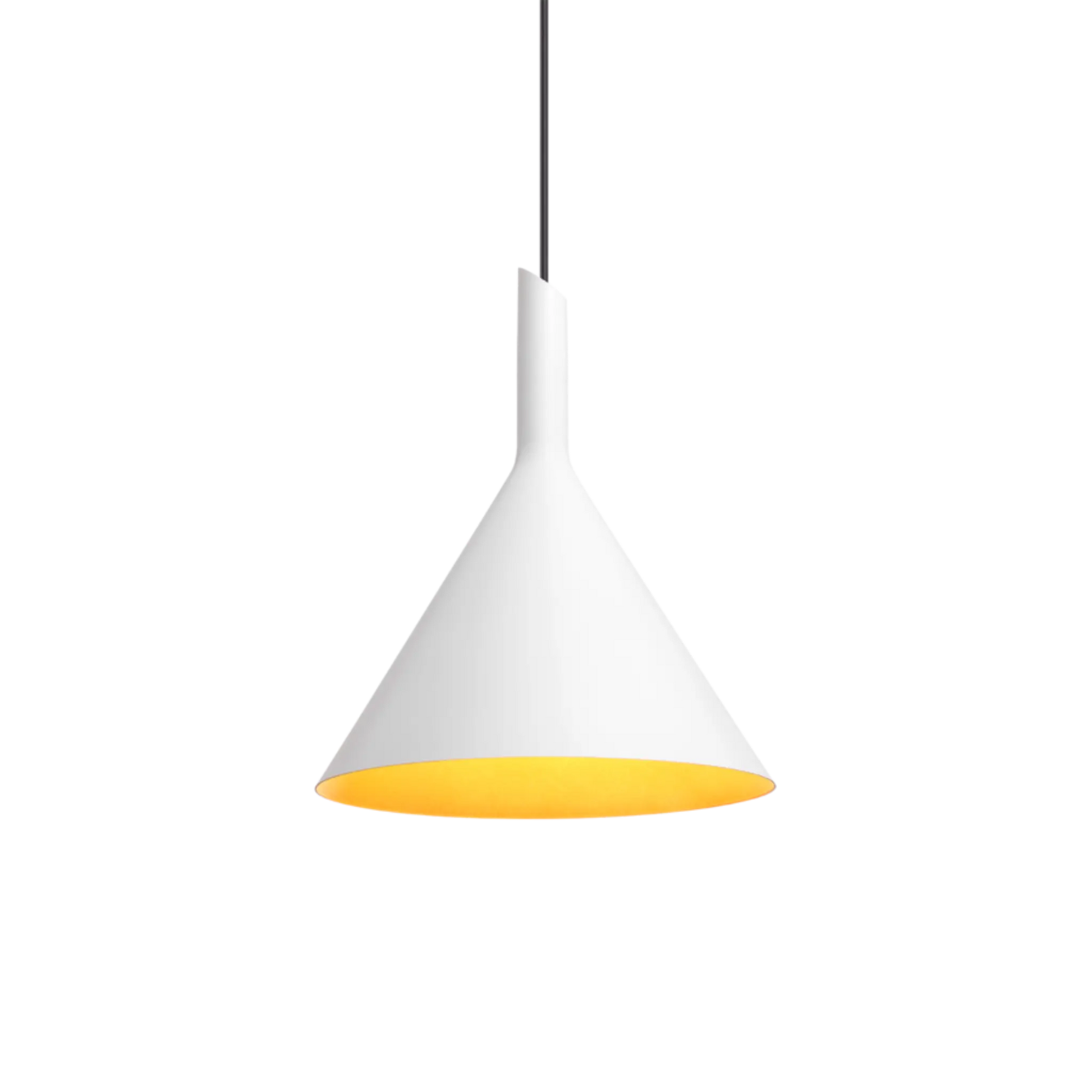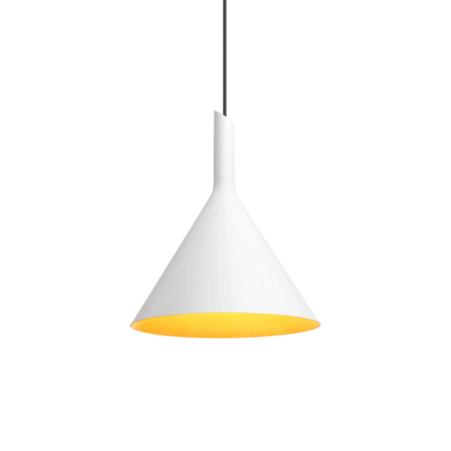 Ce luminaire suspendu au design élégant associe une finition en aluminium blanc mat et des touches dorées pour une esthétique raffinée et moderne. Son câble de suspension noir, réglable jusqu'à 4000 mm, permet une installation sur mesure, s'adaptant à différentes hauteurs de plafond.