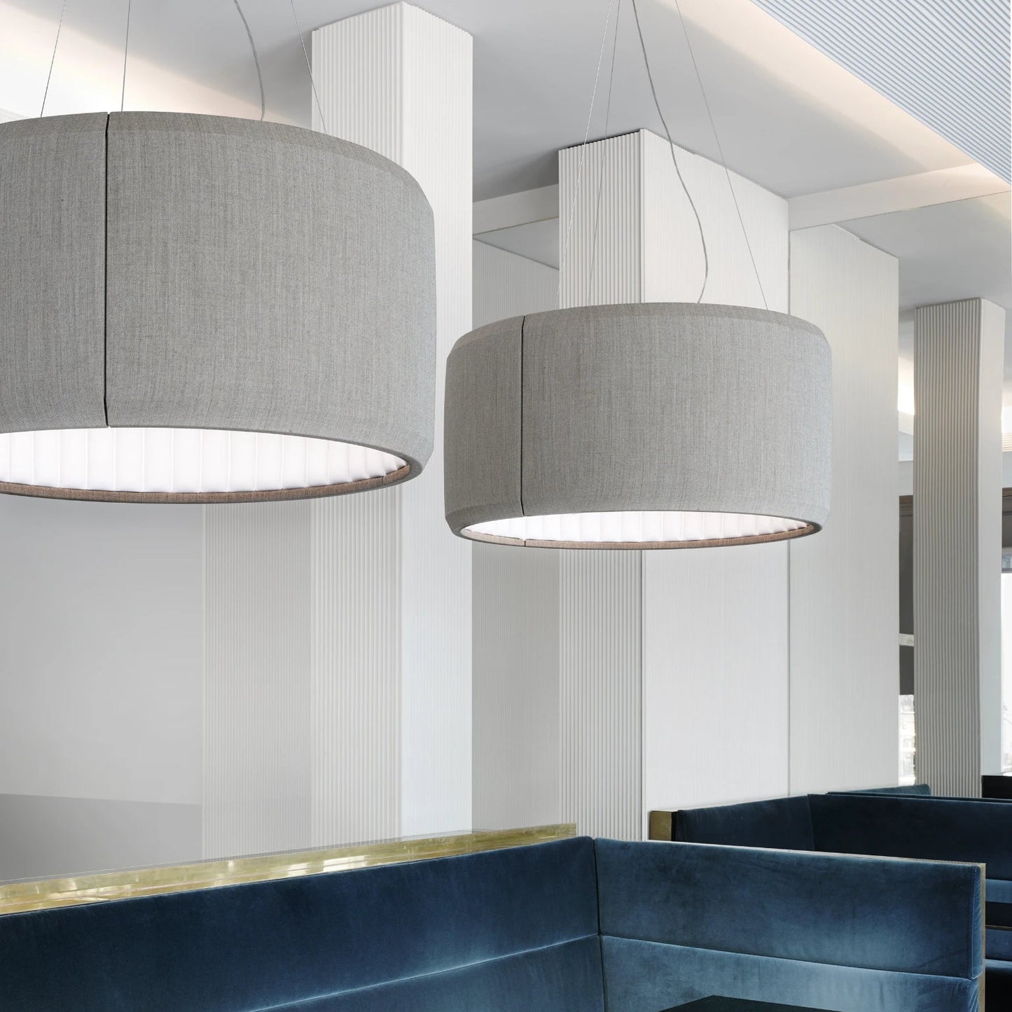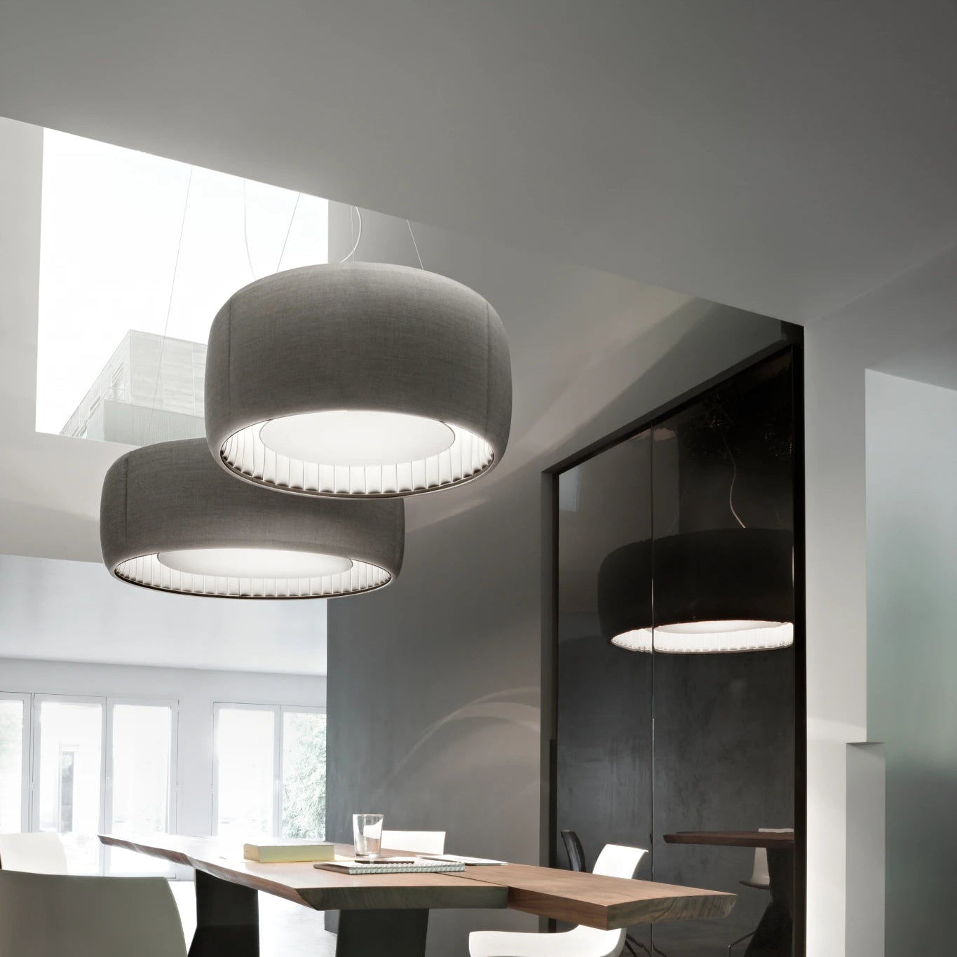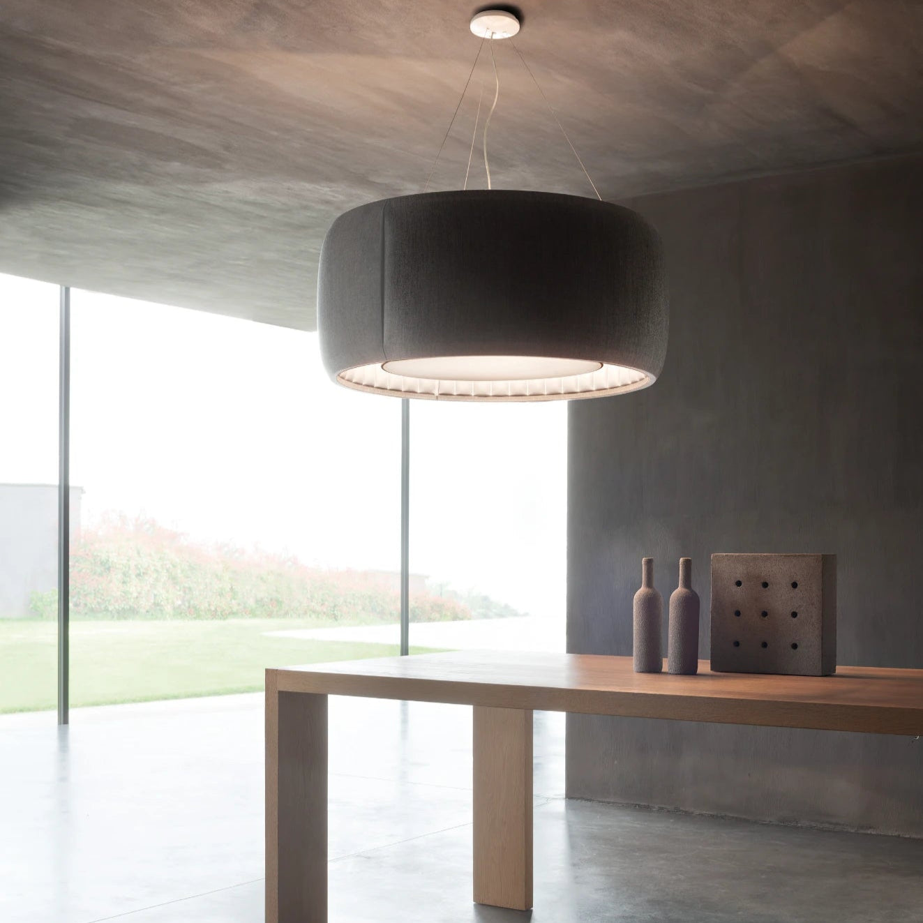 La suspension Luceplan Silenzio, imaginée par Monica Armani, marie design moderne et technologie acoustique avec son tissu absorbant le bruit. Disponible en 2700K ou 3000K, elle diffuse une lumière douce et chaleureuse, idéale pour créer une ambiance apaisante dans tout intérieur élégant. Sa polyvalence et ses différentes tailles en font un choix adaptable à divers espaces.