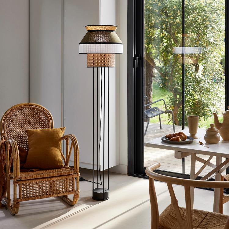 Lampadaire de la collection Singapour édité par la maison française Market Set. Fabriqué en lin lavé et en cannage. Dans un séjour ou une chambre, ce lampadaire vous plonge dans une atmosphère chaleureuse. Disponible en plusieurs coloris.