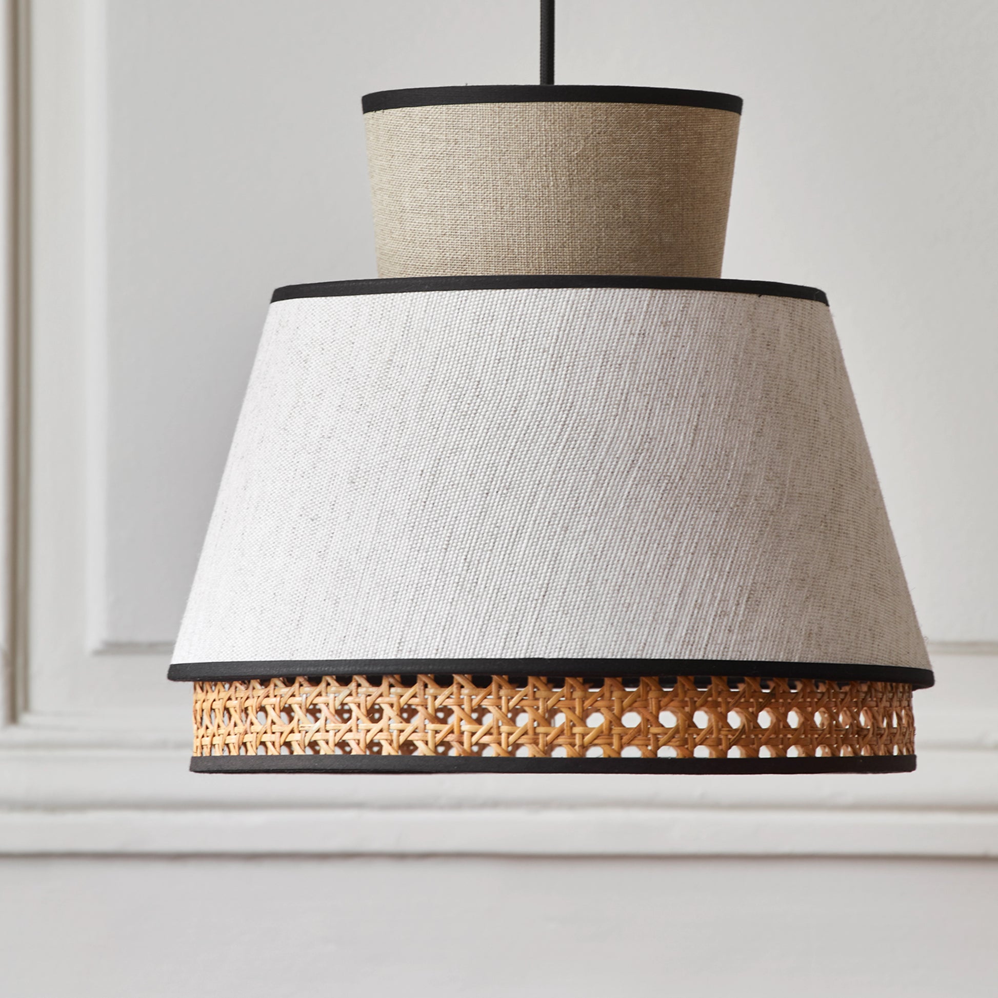 Découvrez la suspension Singapour XM de la maison d'édition française Market Set. Singapour est une des suspensions originales, composée de trois abat-jour en lin lavé et en cannage. Le cannage, connu depuis très longtemps, apporte un jeu de contraste agréable de la lumière sur vos murs.