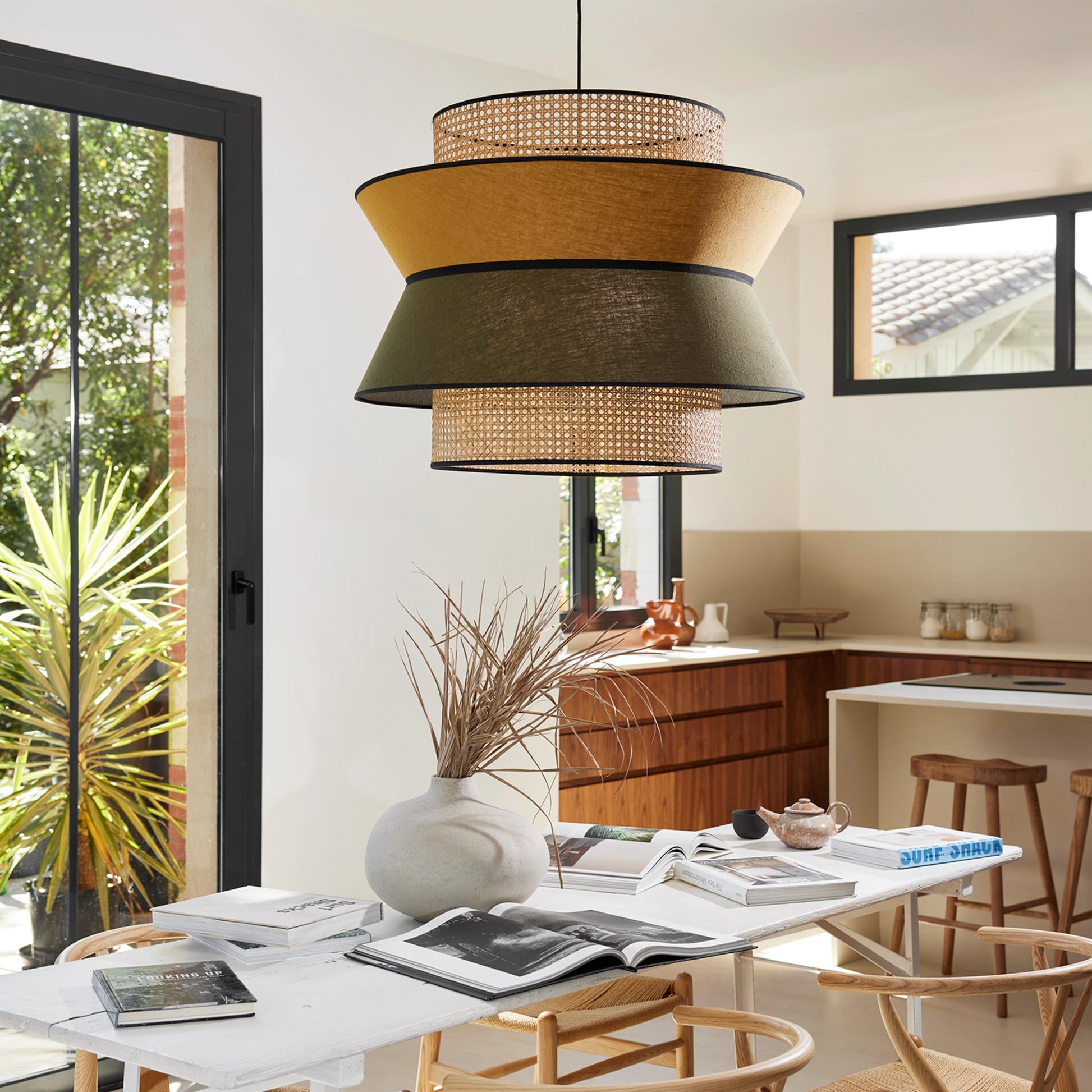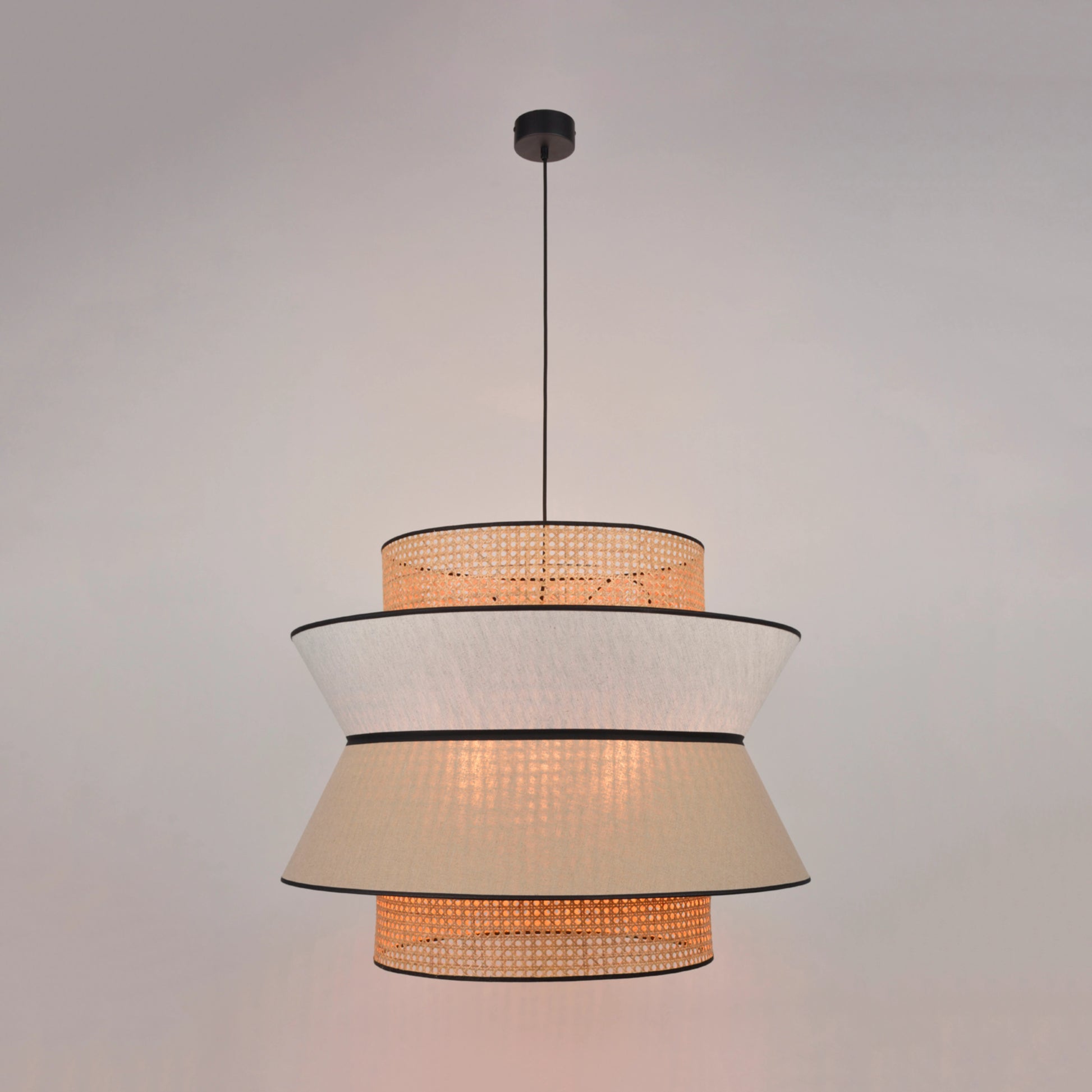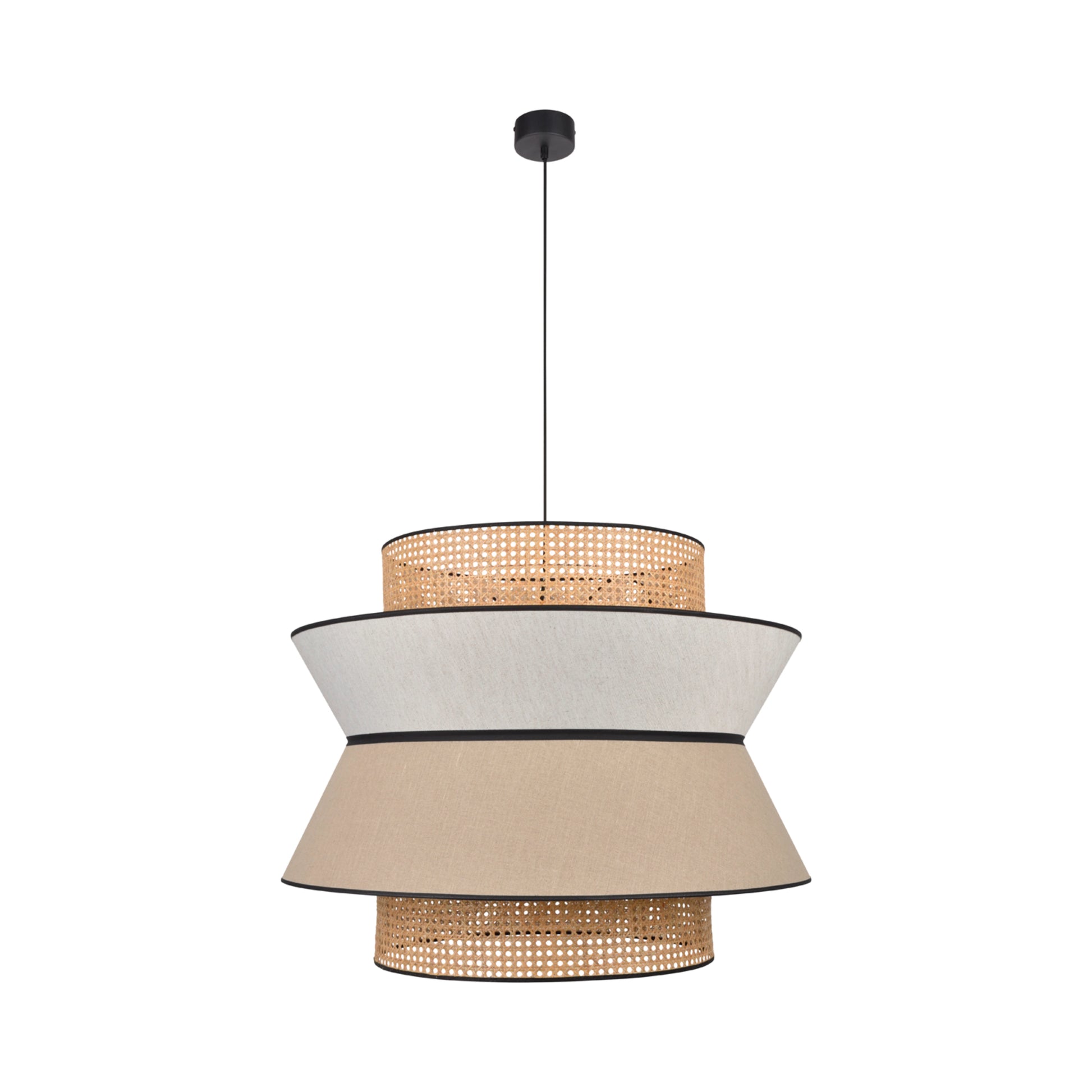 Découvrez la suspension Singapour XXL de la maison d'édition française Market Set. Singapour est une des suspensions originales, composée de trois abat-jour en lin lavé et en cannage. Le cannage, connu depuis très longtemps, apporte un jeu de contraste agréable de la lumière sur vos murs.