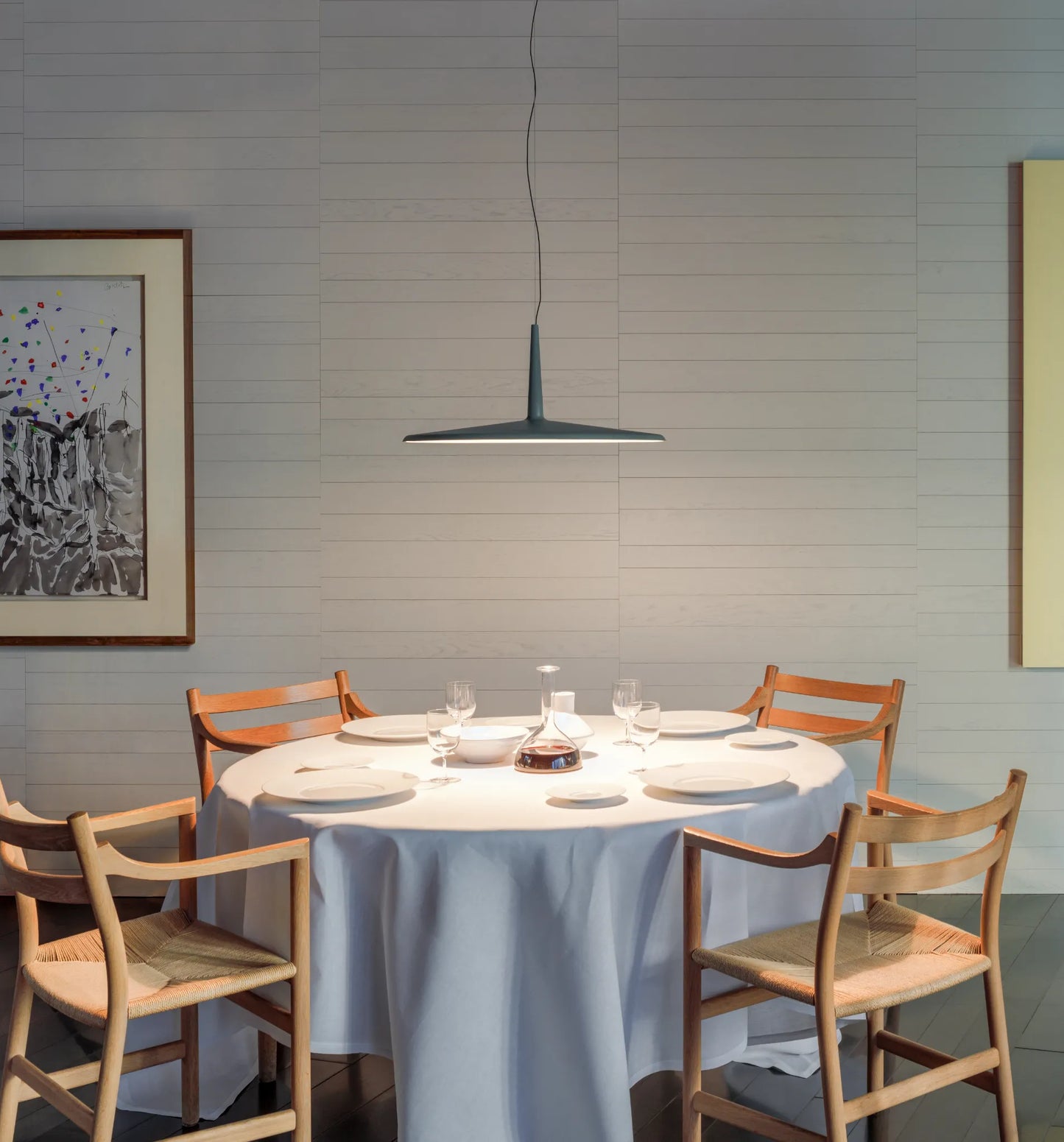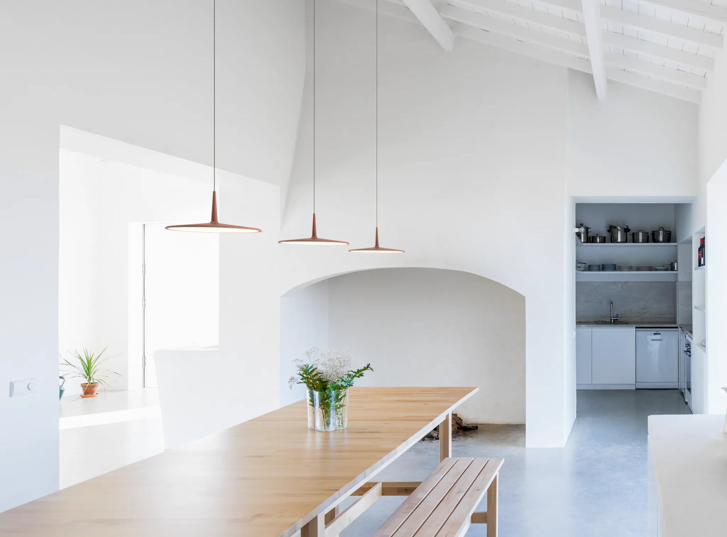 Les lampes suspendues Skan sont une création de Lievore, Altherr, Molina. Vibia propose une grande variété de tailles et de dispositions pour ces lampes suspendues : depuis les lampes ayant un unique diffuseur, jusqu'aux clusters de 3 ou 5 unités. Toutes ont comme dénominateur commun la touche de rénovation d'un design classique et la fonctionnalité lumineuse qu'elles apportent. Toutes les lampes suspendues Skan de Vibia utilisent un éclairage LED.