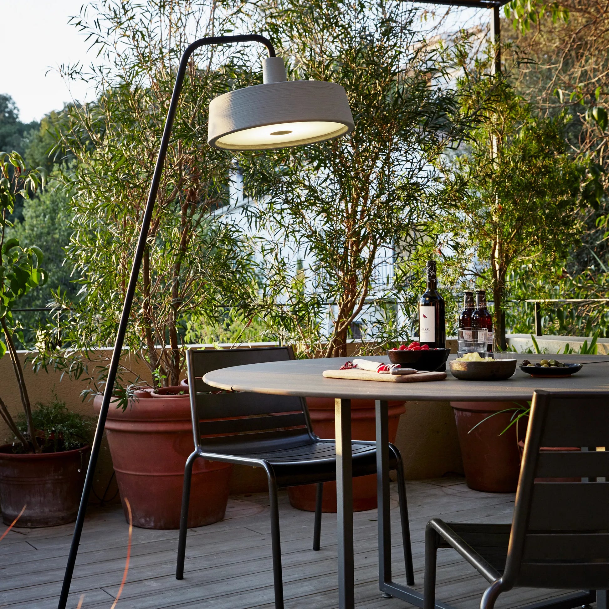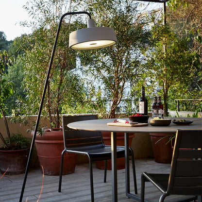 Soho est présentée comme une déclaration qui reconnaît les vertus des lampes traditionnellement utilisées dans les marchés, les tavernes et les cafétérias. Après avoir recherché différents volumes, proportions et matériaux, de nouveaux usages et effets de lumière sont nés. Grâce à l'utilisation de polyéthylène rotomoulé, de grandes dimensions peuvent être atteintes. Le lampadaire Soho posède un abat jour d'un diamètre de 38cm disponible en plusieurs finitions. Il sera idéal pour éclairer une table à manger d'extérieur, et à placer sous une pergola, grâce à son IP44.