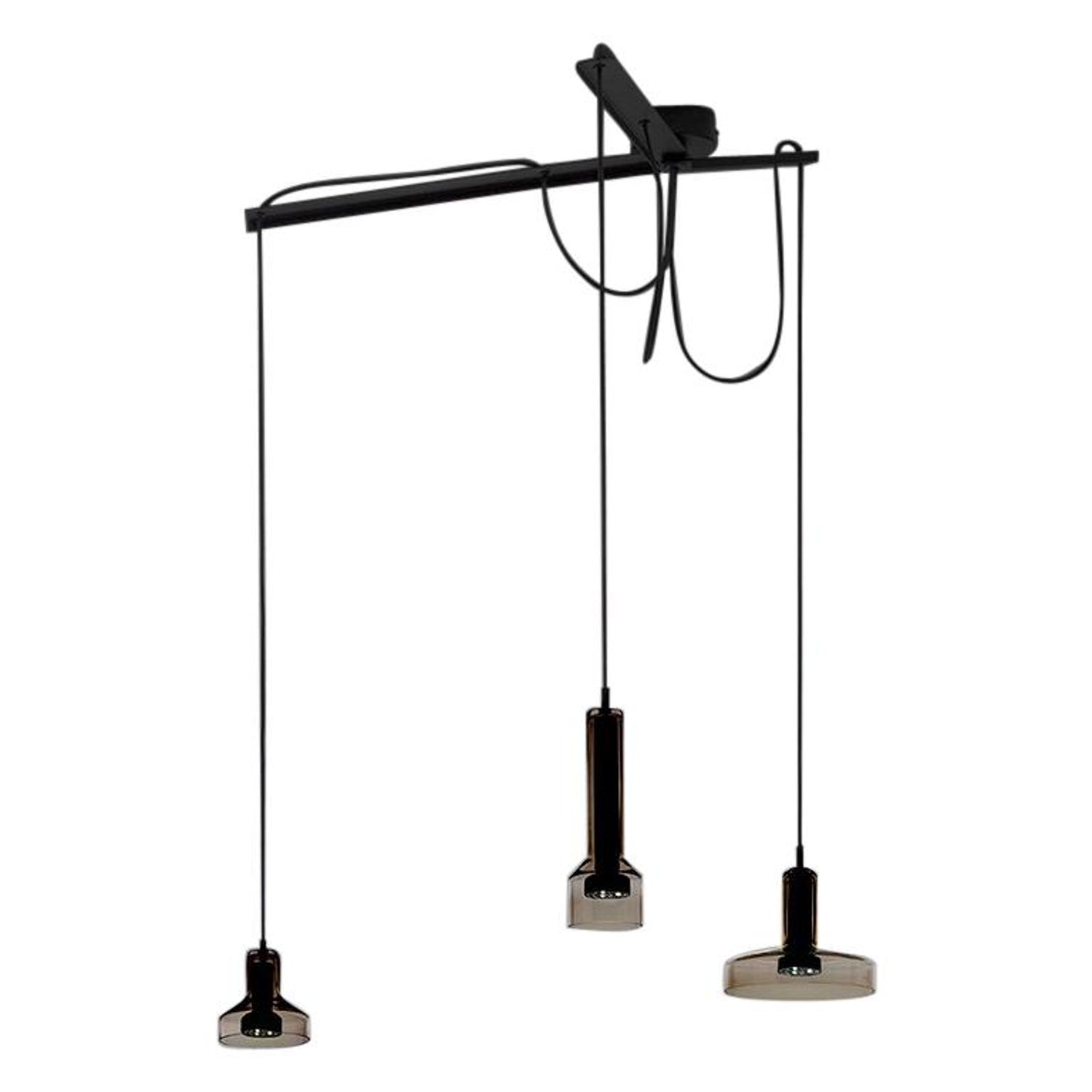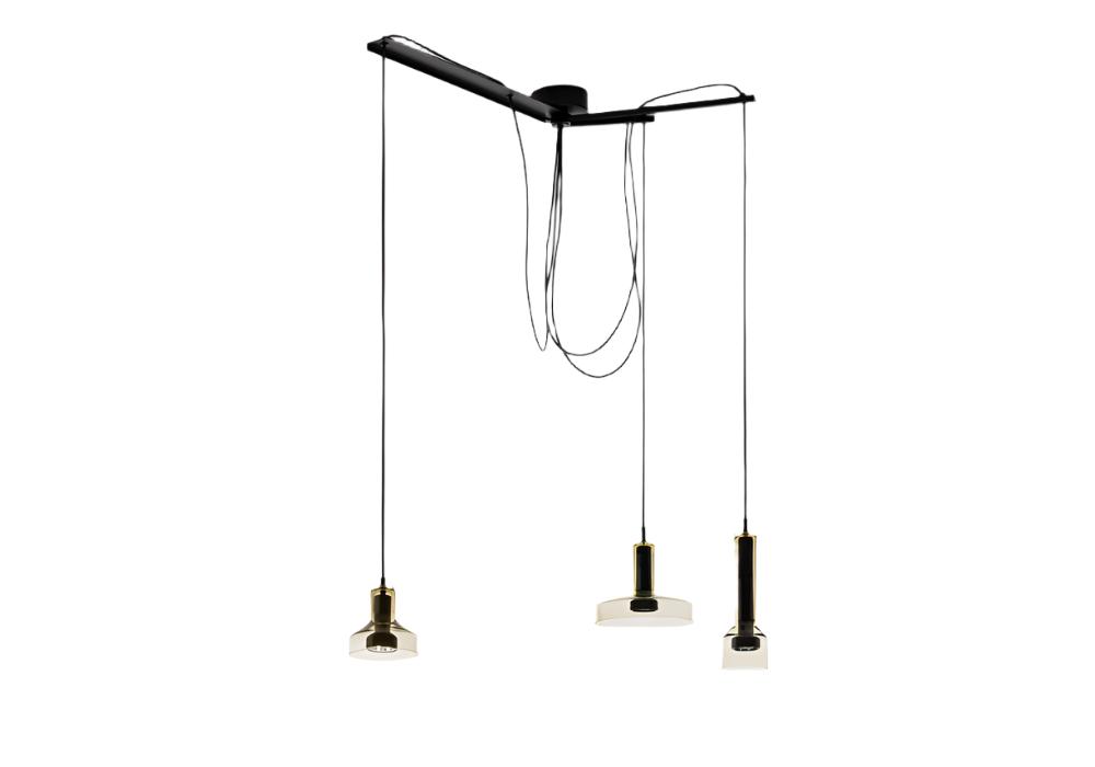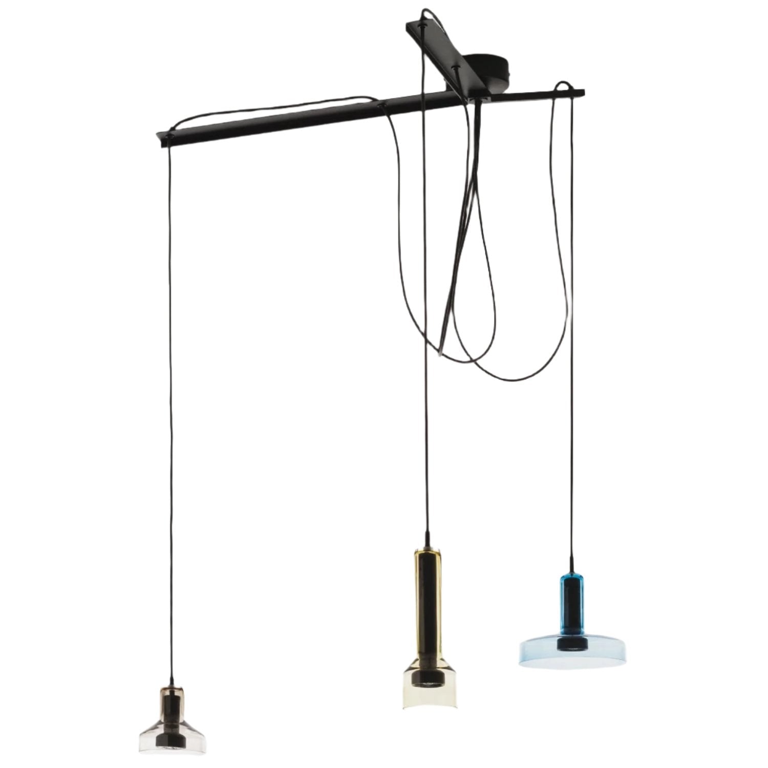 Réalisée en verre soufflé moulé, la suspension Stab Light est fabriquée artisanalement selon les techniques traditionnelles utilisées en Bohème depuis le 19ème siècle. Grâce à sa canne, l’artisan verrier souffle à la bouche plusieurs couches superposées de verre aux coloris différents. Il façonne ensuite à la main le verre afin qu’il prenne la forme du moule en bois dans lequel il sera ensuite inséré. Chaque moule en bois est également fabriqué à la main. Pour finir, chaque pièce est polie manuellement pour atteindre une brillance extrême. L’abat-jour de Stab Light se compose de deux éléments emboîtés. L’abat-jour classique en verre coloré laisse apparaître en transparence un diffuseur moderne en métal noir qui ressemble à une lampe torche ! La personnalité charismatique de cette suspension s'exprime au travers de l'association de ces deux éléments aux styles et matériaux différents. Le câble est en tissu noir.