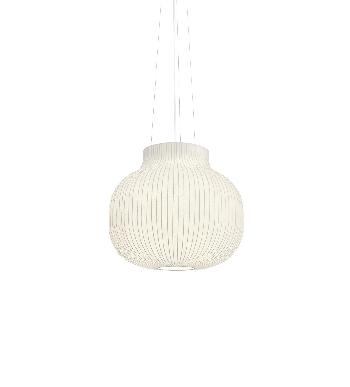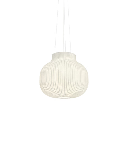 La lampe suspendue Strand est conçue avec des formes douces et ludiques pour une expression moderne. Le design fournit à la fois un éclairage diffus et un éclairage direct, ce dernier par le biais de ses ouvertures supérieure et inférieure. Le design est réalisé dans un matériau cocon pulvérisé qui se compose de minuscules brins pour une structure complexe et intrigante qui, associée à sa forme moderne, donne à la lampe suspendue Strand un aspect presque nuageux. Avec son matériau cocon filtrant la lumière pour une lueur chaude et confortable, la lampe suspendue Strand plane légèrement dans l'espace, apportant confort, harmonie et une sensibilité raffinée à n'importe quelle pièce.