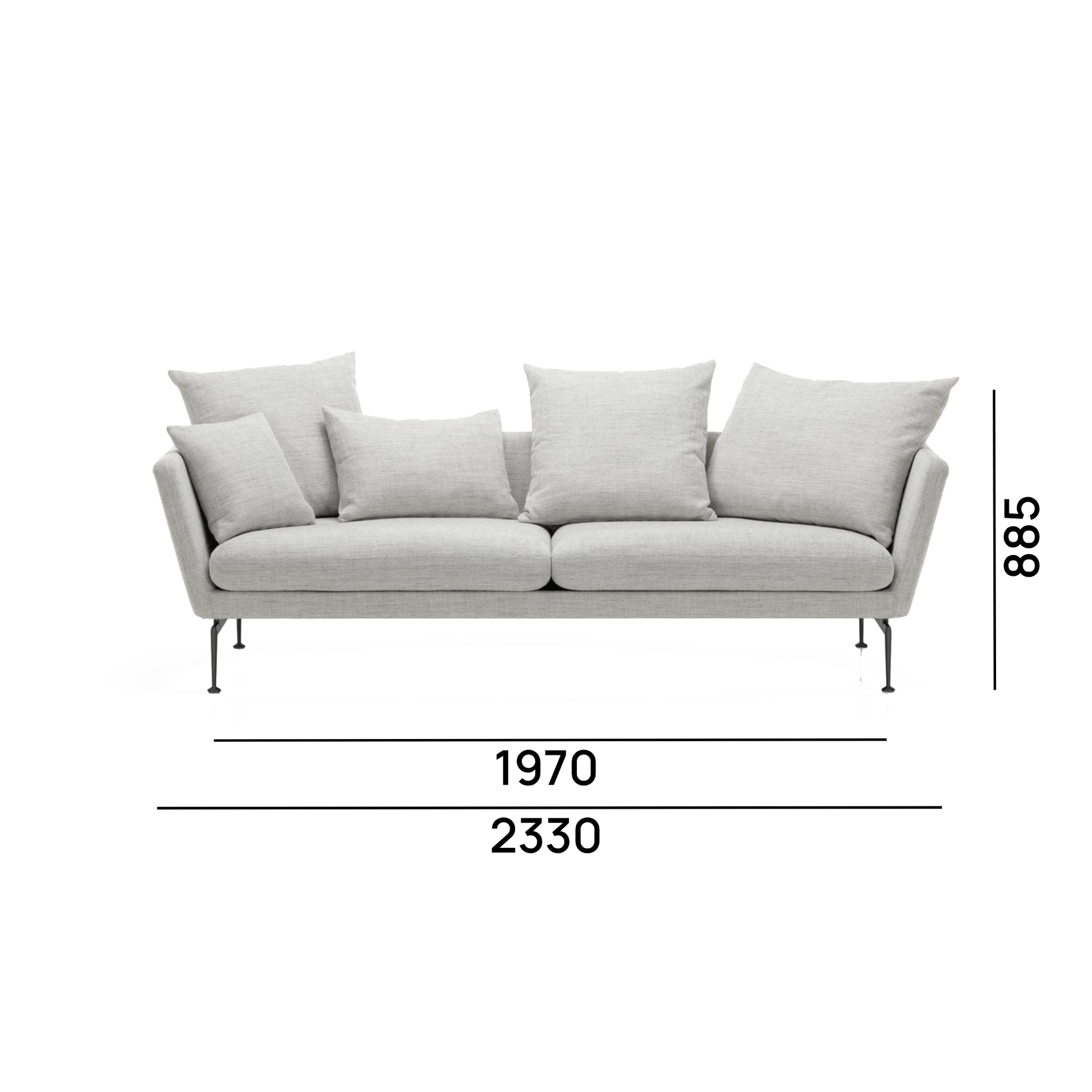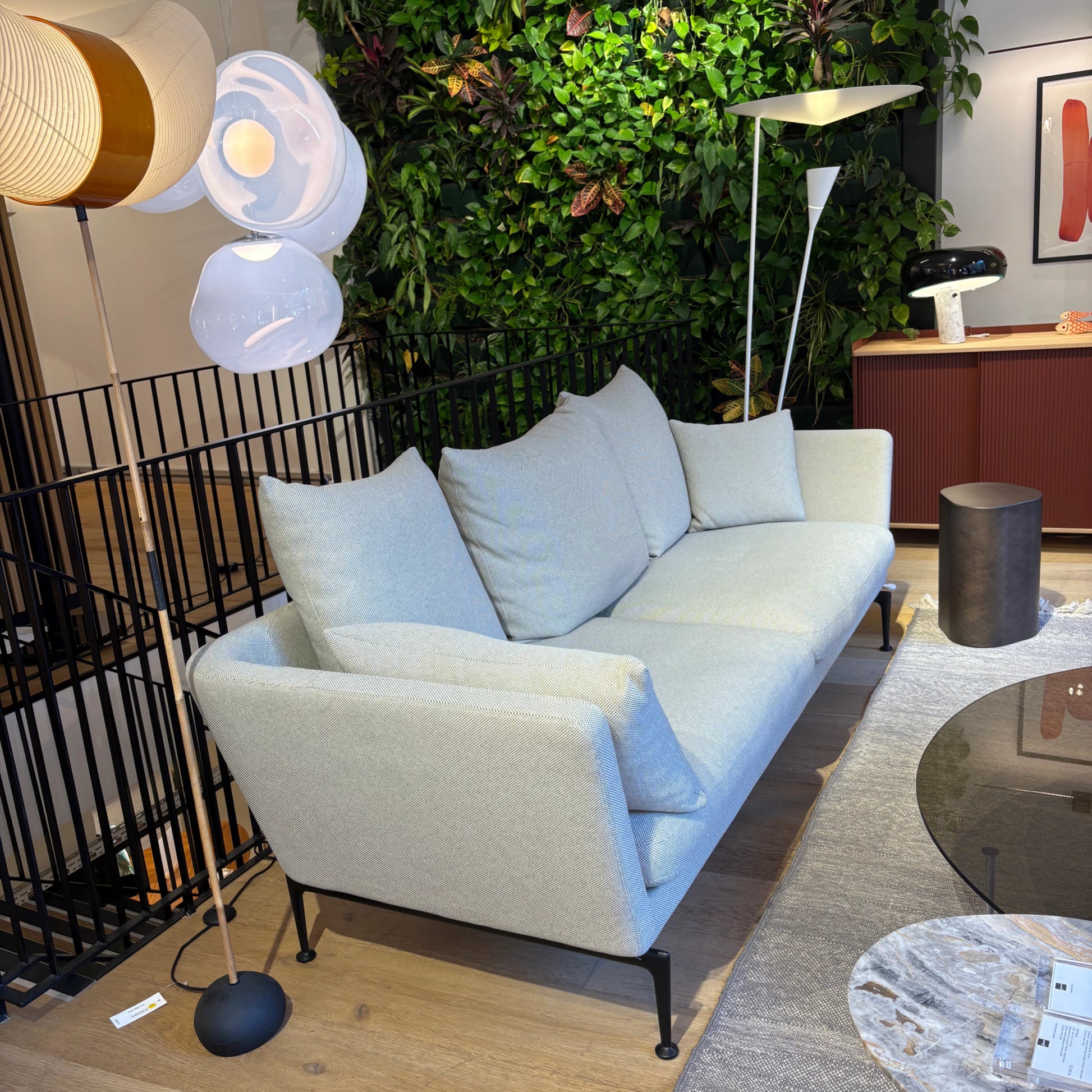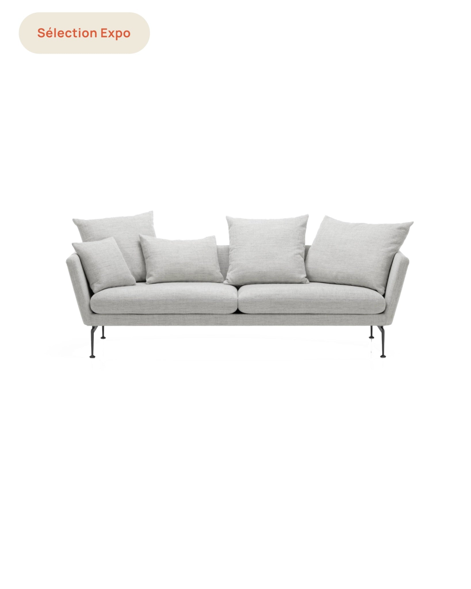 Le canapé Suita, conçu par Antonio Citterio, incarne une vision raffinée et fonctionnelle du canapé contemporain. Sa silhouette structurée, aux proportions équilibrées, reflète une esthétique à la fois technique et élégante, caractéristique du travail du designer. Les lignes nettes et la légèreté visuelle de la structure confèrent au canapé une présence affirmée sans alourdir l’espace. La version 3 places offre un confort généreux tout en conservant une grande sobriété formelle. Issu d’une famille de canapés composée de multiples éléments, le Suita peut être utilisé seul ou combiné à d’autres modules pour créer des configurations adaptées aux besoins et à l’architecture de l’intérieur. Cette modularité en fait une pièce polyvalente, aussi bien adaptée à un salon privé qu’à un espace professionnel ou de réception.