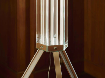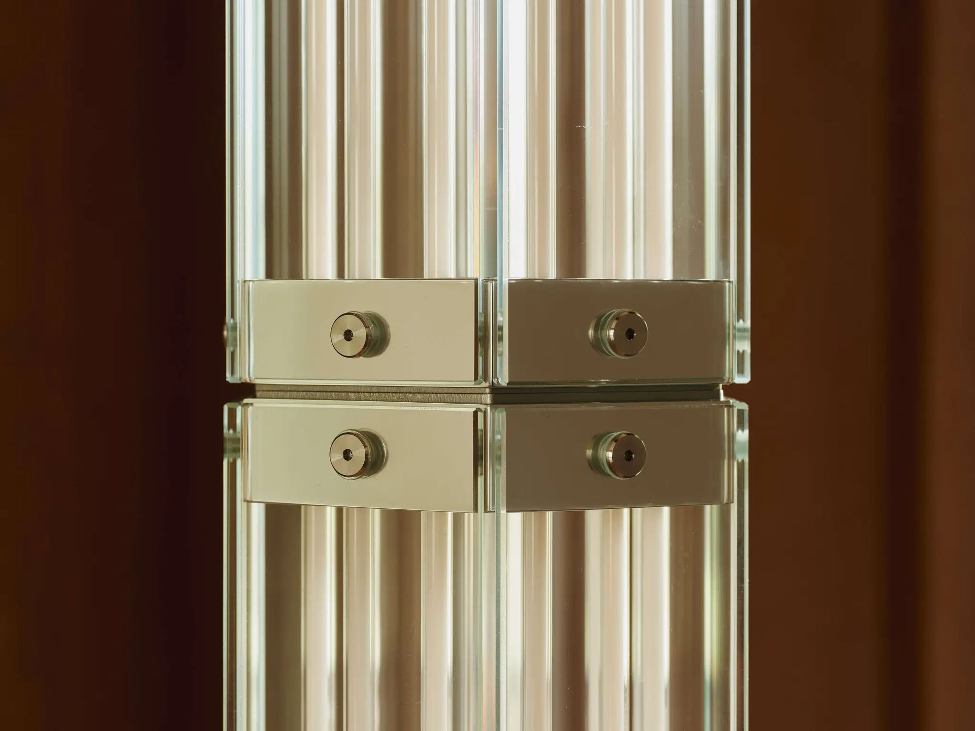 Composée de plusieurs hexagones de verre reliés par un élément en aluminium poli, le lampadaire SuperWire éclaire toute sa surface grâce à une nouvelle source : une bande LED très fine, plate, douce et flexible mesurant jusqu'à un mètre, qui émet une lumière chaude et homogène sur toute sa longueur et qui peut être facilement retirée pour être remplacée et réparée, ce qui est unique dans le panorama des lampes LED sans ampoules.