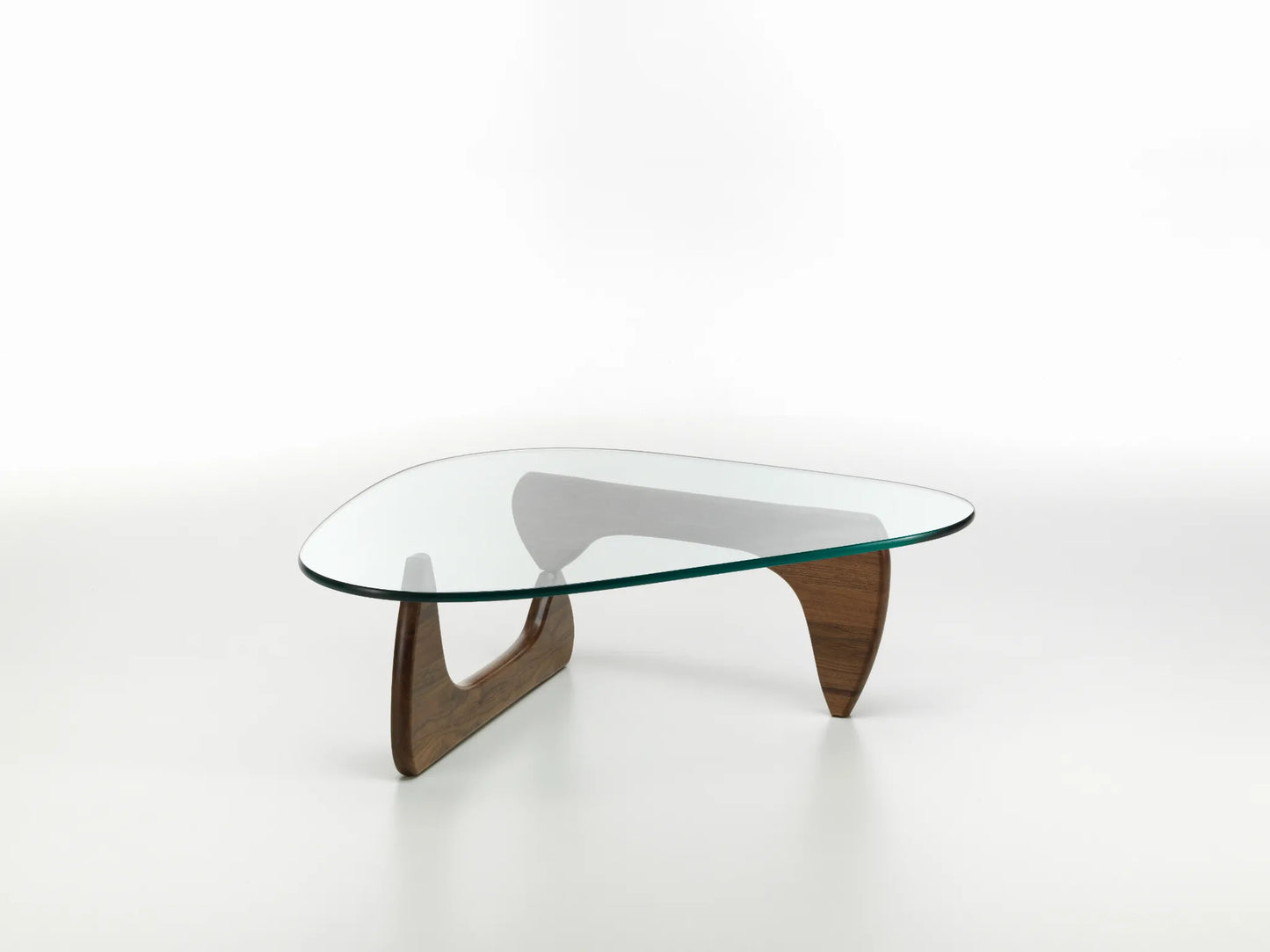 À travers la Coffee Table, Isamu Noguchi a transposé l'esthétique biomorphique de ses œuvres sculpturales dans un meuble aux lignes organiques caractéristiques. C'est vraisemblablement la raison pour laquelle Noguchi considérait la table comme sa création de mobilier la plus réussie. Deux pieds en bois, disponibles en frêne noir, en érable ou en noyer, sont disposés à angle droit afin de former un support stable pour le lourd plateau de verre épais.