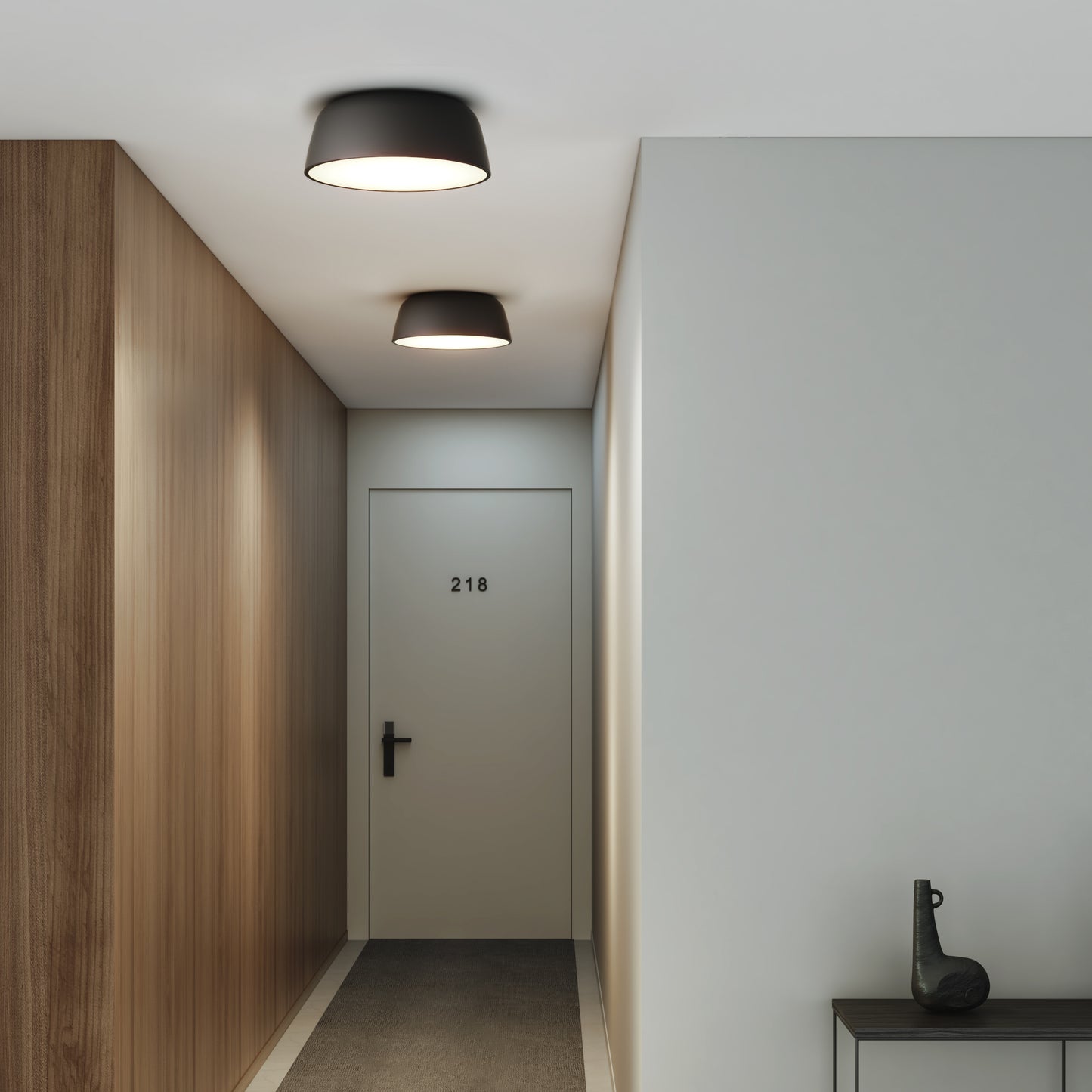 Cette forme de cloche incurvée avec audace a été pensée pour donner l'impression de flotter. Le plafonnier Taiko est suffisamment polyvalent pour être utilisé dans un séjour, une chambre ou dans un couloir. Élaboré en acier repoussé, l'abat-jour se décline en noir mat ou blanc, tandis que le diffuseur blanc en polycarbonate fournit une lumière vive mais non éblouissante.
