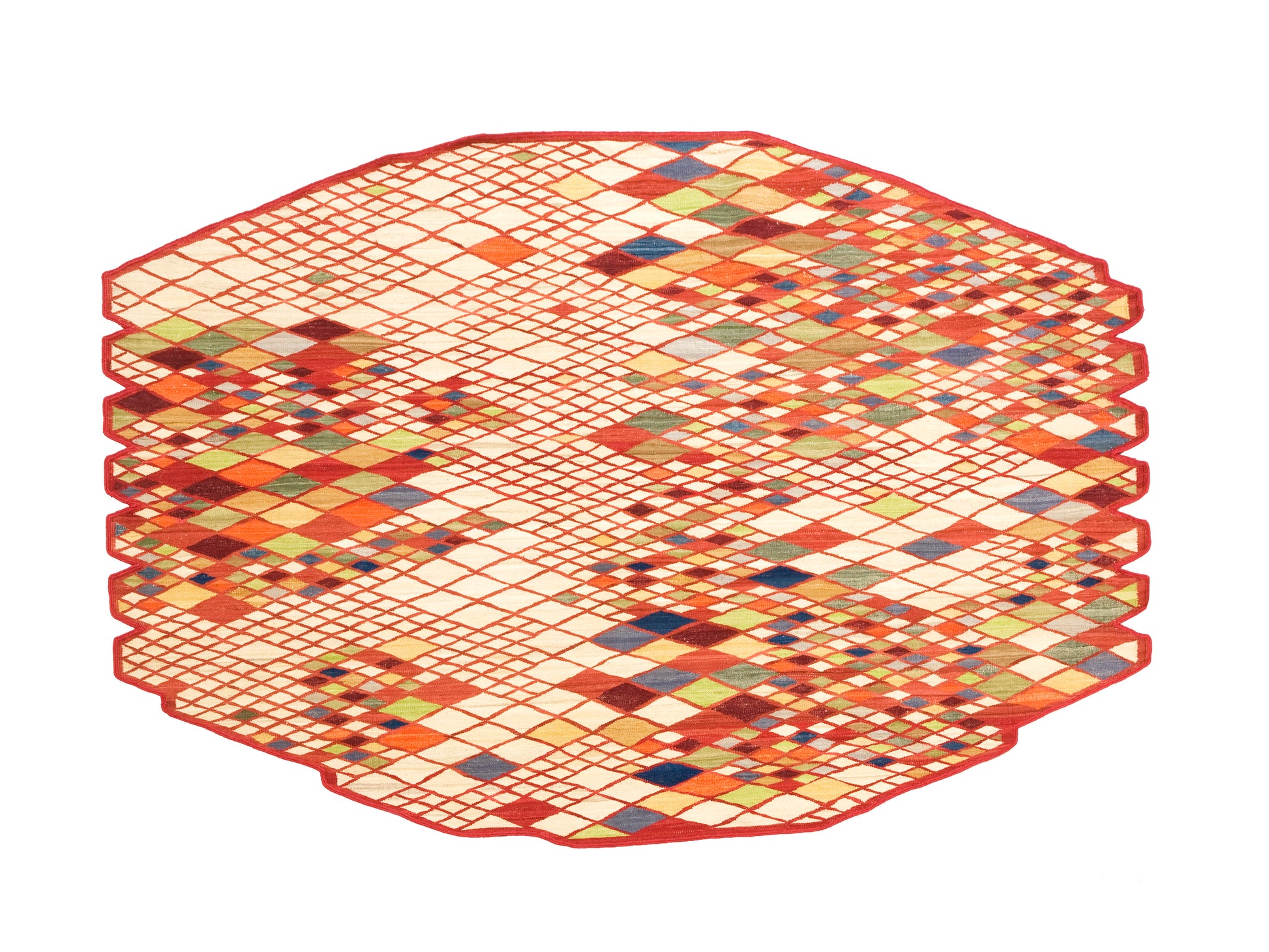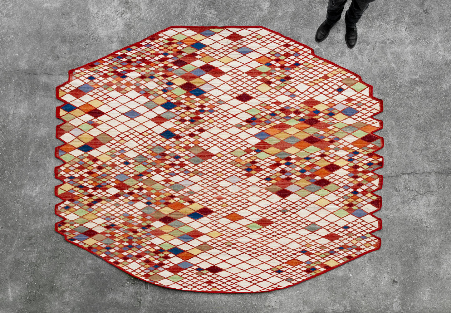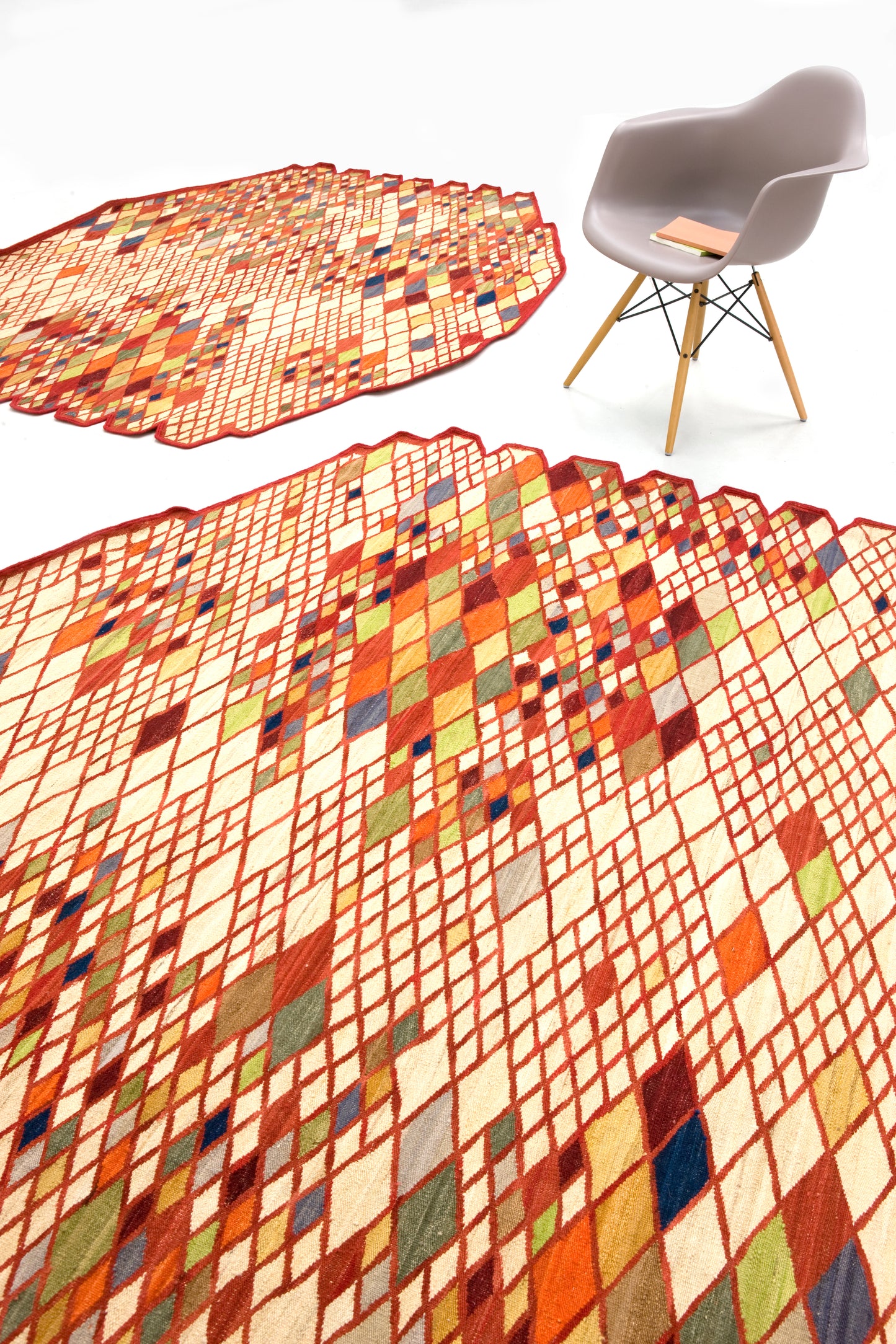 Avec la collection Losanges, les frères Bouroullec poursuivent leur étude de simplicité et d’élégance, réinterprétant le tapis persan traditionnel en utilisant d’anciennes techniques de kilim. Techniquement complexe, la collection Losanges nécessite une grande habileté grâce à la combinaison de 13 couleurs dans le motif géométrique, un grand défi pour les artisans du nord du Pakistan.Outre les techniques d’artisanat en cause, la laine afghane est également filée à la main pour obtenir des tons de couleur uniques qui rendent chaque losange différent, et chaque tapis un élément unique.