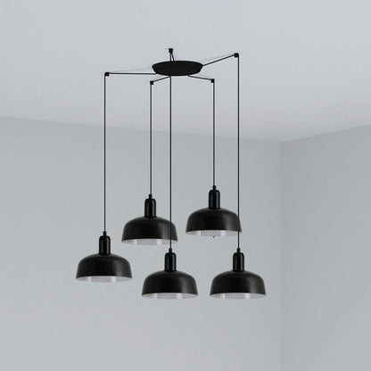 TATAWIN S est une gamme de luminaires conçue par Adolfo Abejón, inspirée par les caractéristiques architecturales des maisons de Tataouine, une ville du sud-est de la Tunisie. Cette suspension avec platine multiple à 5 lampes et un abat-jour en verre opalin blanc offre une solution parfaite pour créer des compositions lumineuses à partir d'un seul point de lumière. Idéale pour les espaces contract et les intérieurs modernes, elle apporte une lumière ambiante douce et élégante, tout en ajoutant une touche contemporaine grâce à sa structure en acier noir et son abat-jour opalin.