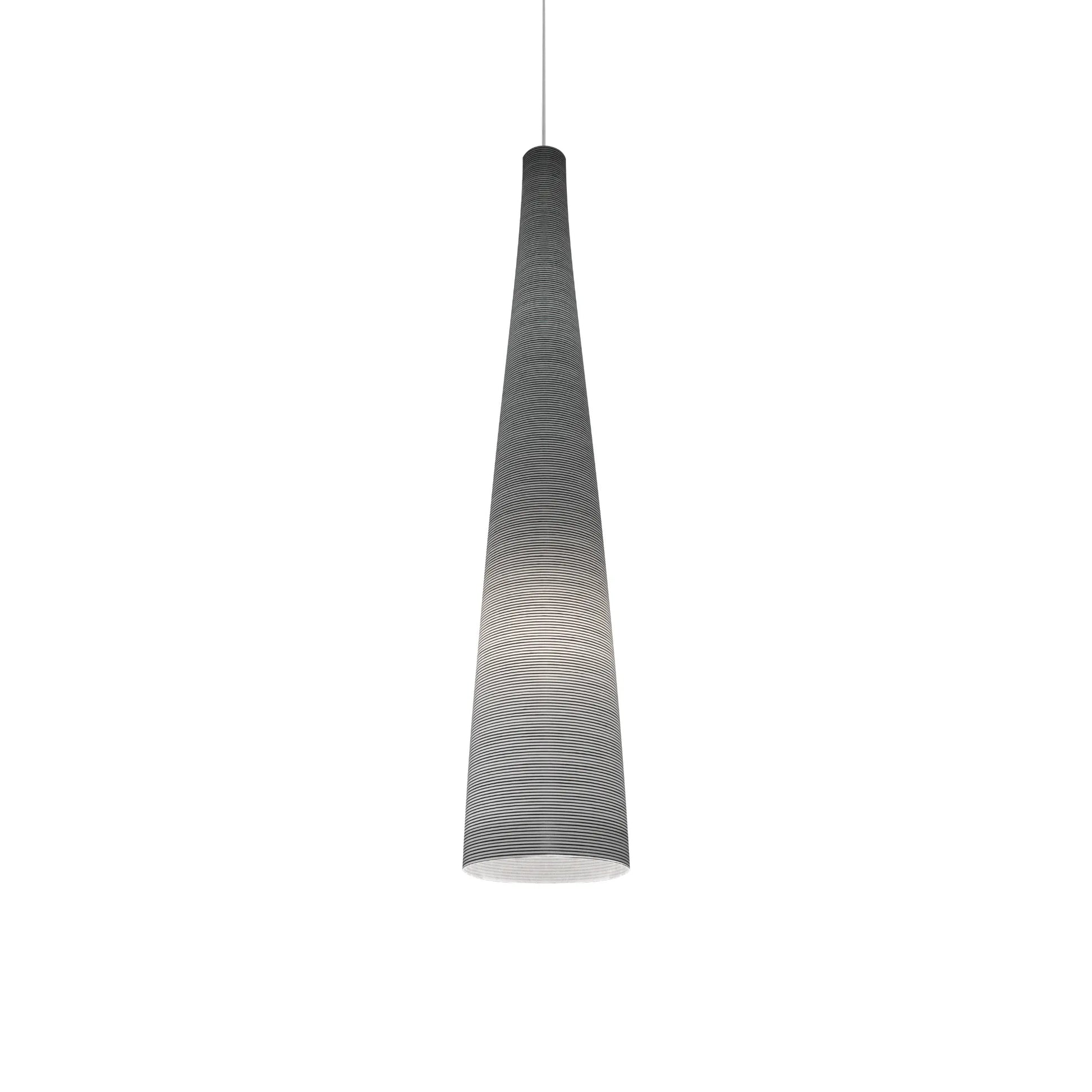 Réalisée dans un tissu de verre veiné de fil de carbone noir, Tite est une synthèse géniale qui fait office à la fois d’ornement graphique et de structure fonctionnelle. Tite 1 présente une forme particulièrement allongée qui la rend idéale pour créer des compositions suspendues.