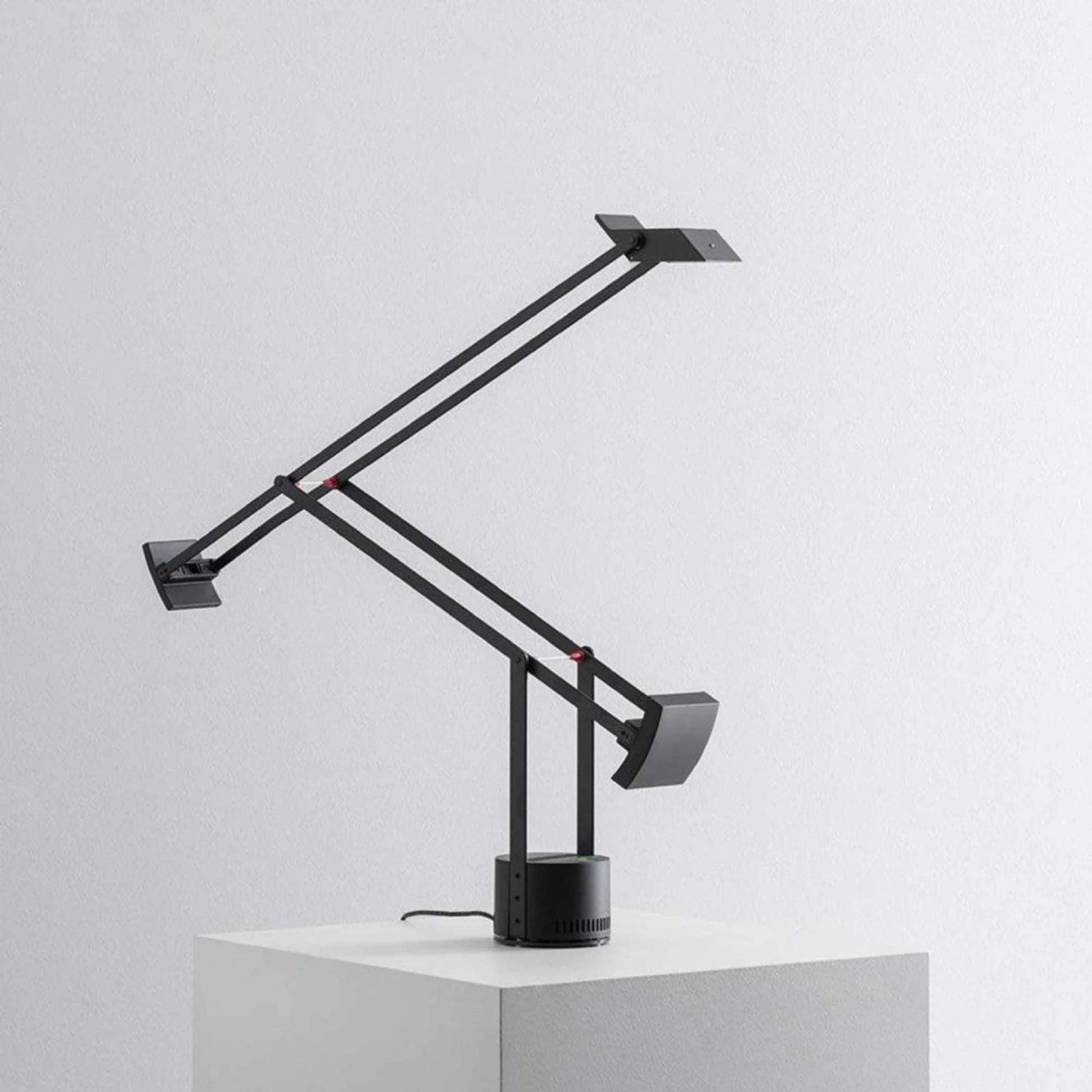 Bras articulés et tête orientable, le tout équilibré par un contrepoids en aluminium verni. Disponible en trois dimensions et, dans la version Plus, avec tête orientable également dans le sens transversal. Son design se distingue par la précision de ses articulations et la liberté d’orientation qu’elle offre (Hauteur max. extension: 1190 mm, Longueur max. extension: 1080 mm).